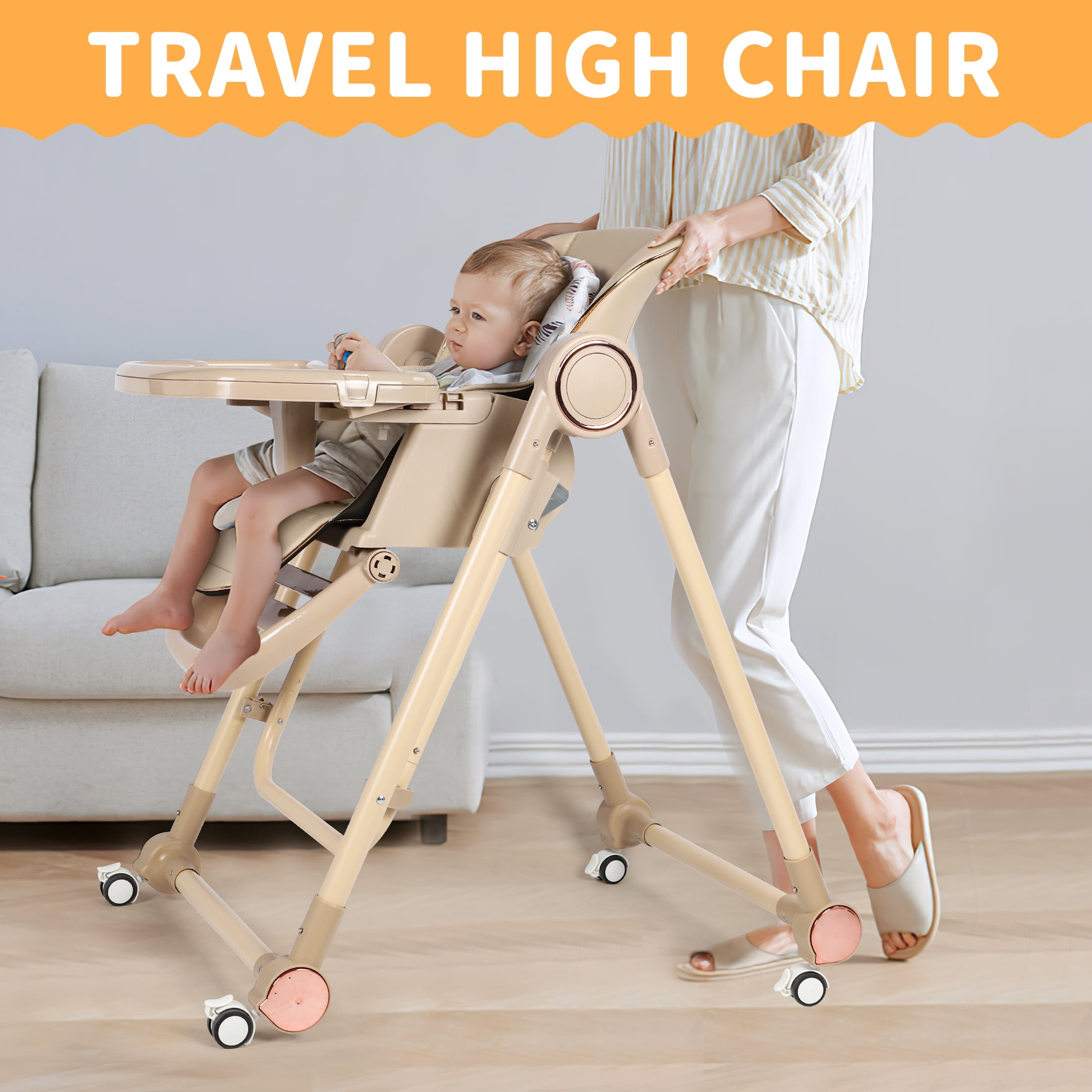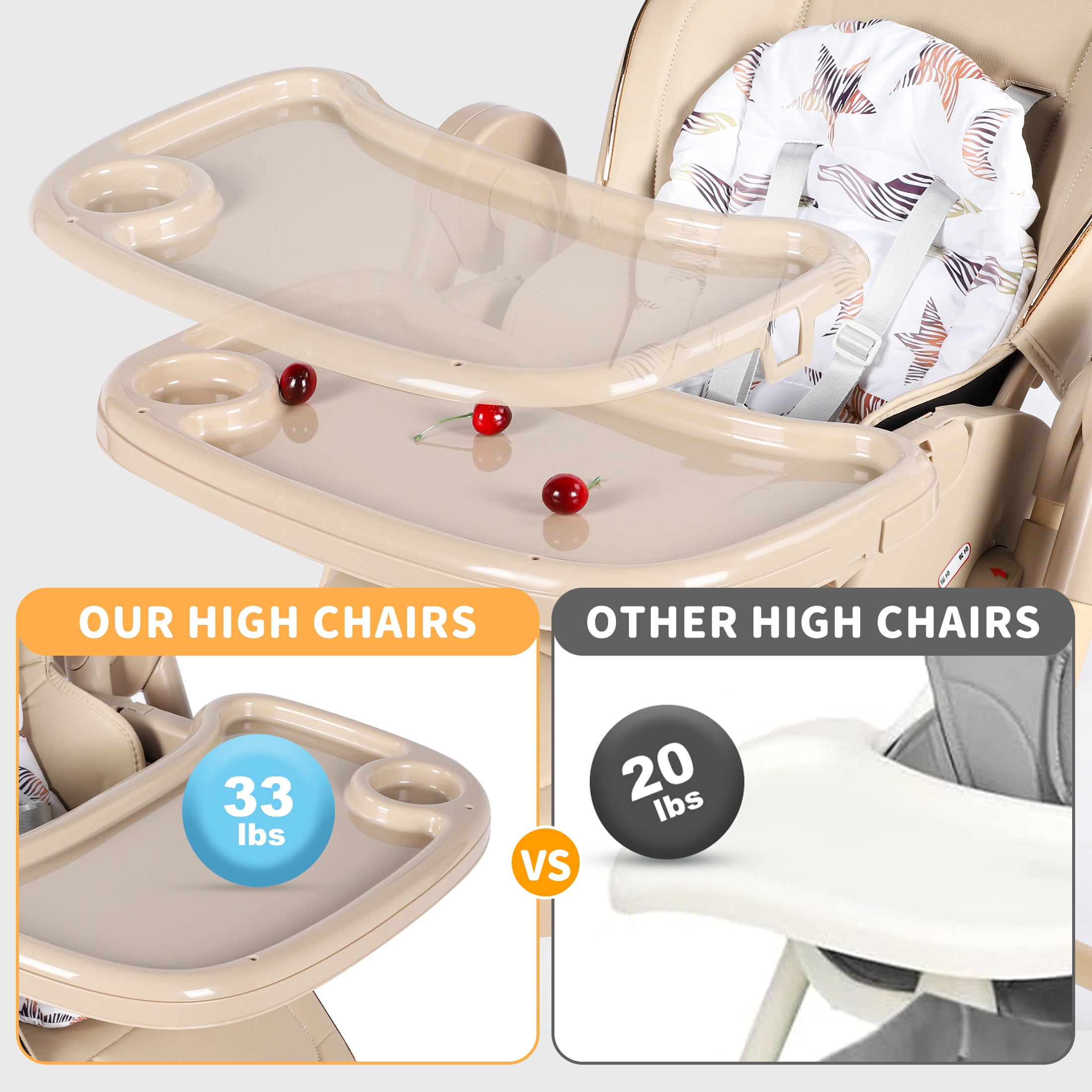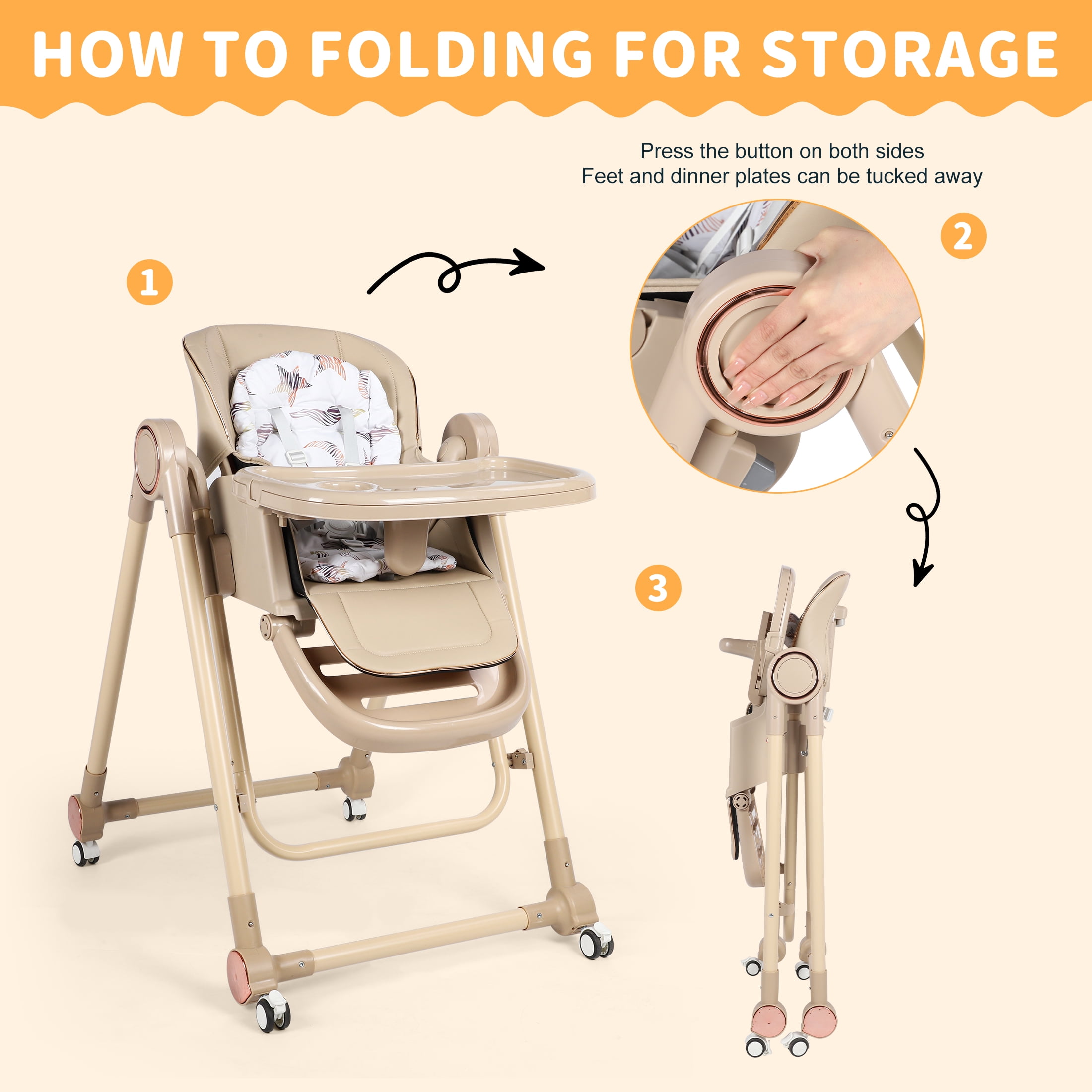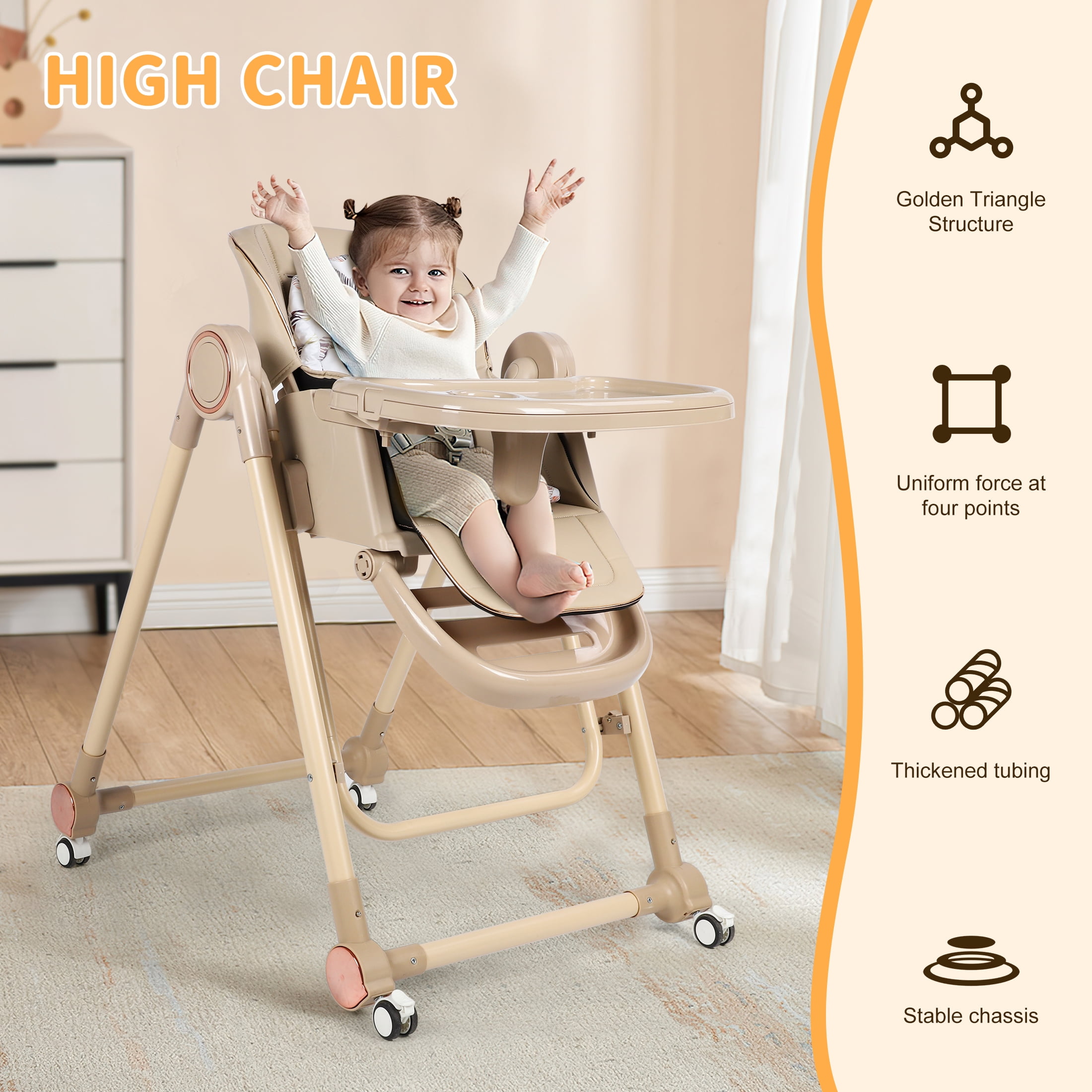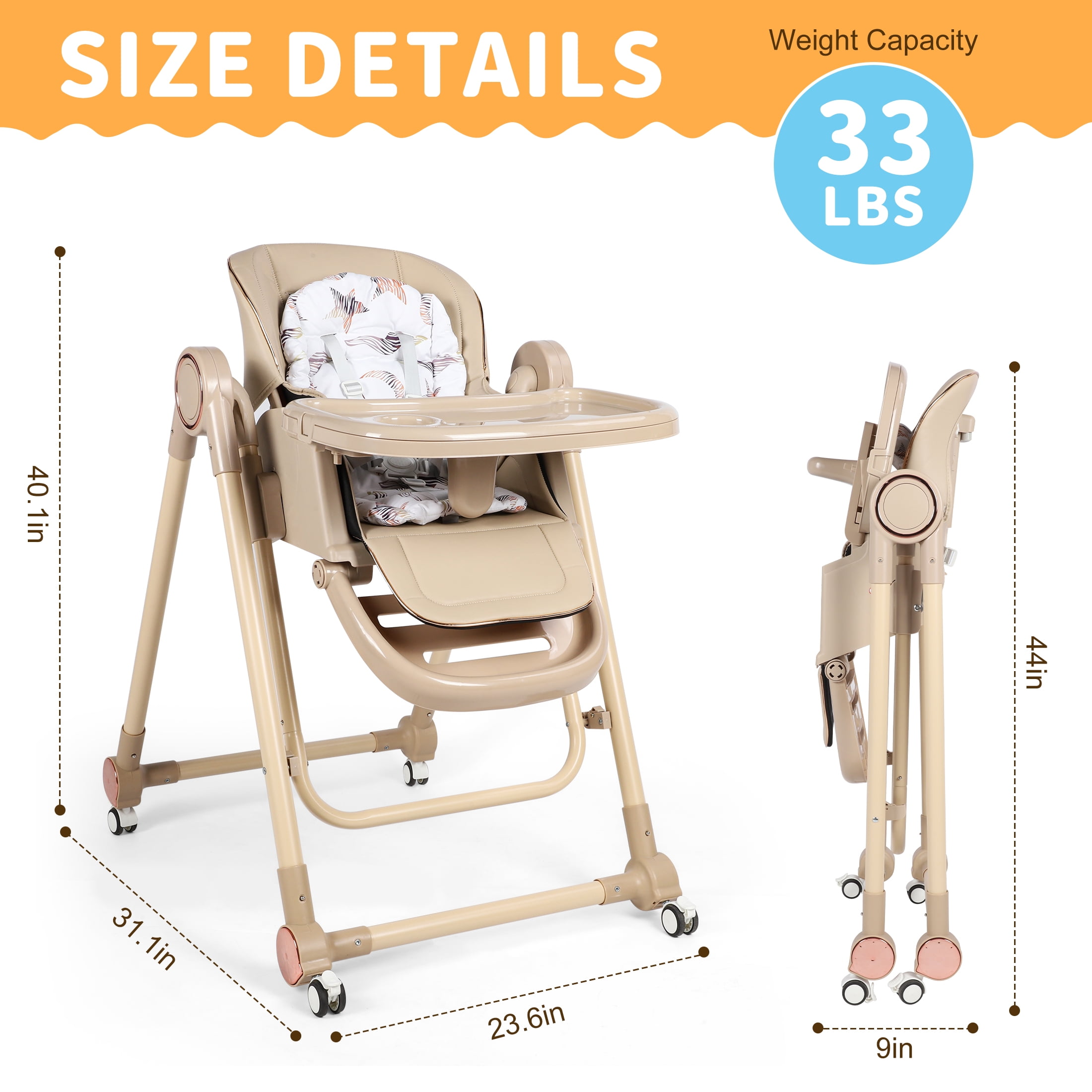 Feature: Swing Chair Mode: This high chair can easily be converted into a baby rocking chair to better soothe your baby to fall asleep easily and frees mom’s hands.The stationary baby swings are compact for babies / Toddlers between 9-60 lbs who cannot sit up or climb out of swing unassisted. Never leave baby unattended. Safety: This baby feeding chair is safety for baby with food-grade PP plastic, five point seat belt, and the base is stable and anti slip. Comfortable: With PU leather chair cushion, 3 adjustable gears, 4 recline positions of backrest, 5 adjustable heights, and the front and back of the dining plate can be adjusted to keep baby more comforable. Multi-Use, Grow With Your Baby: the multi-function high chair can be used as an infant swing chair, dinning chair, gaming chair, sleeping chair, feeding chair or even a toddler chair (remove the tray). Our high chair can perfectly match the growth needs, seamlessly transitioning from newborn to toddler. Easy to clean and store: The dining plates and chair covers can be disassembled for cleaning quickly; and it can be effortlessly folded away with a single click, freeing up valuable space at home or in the trunk.