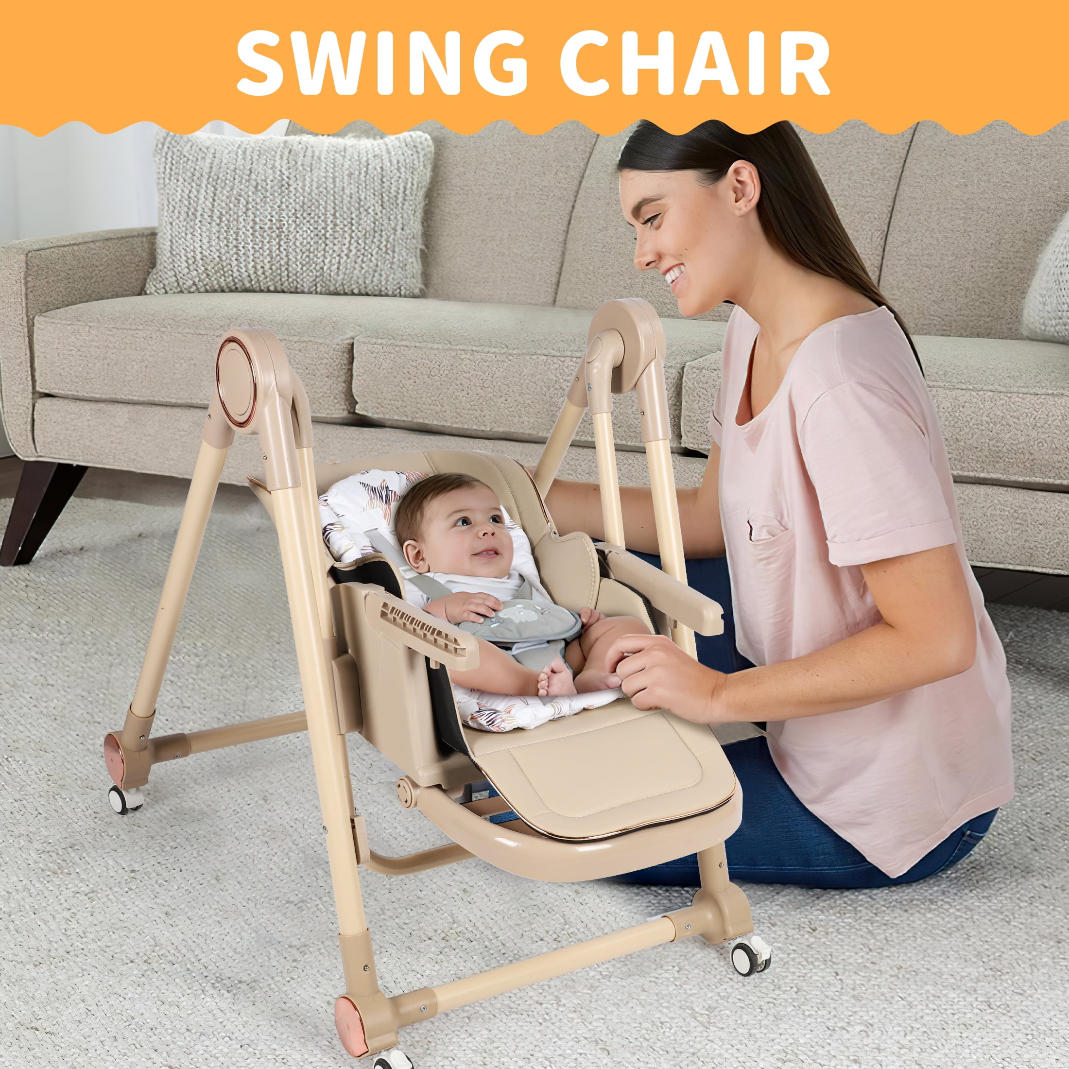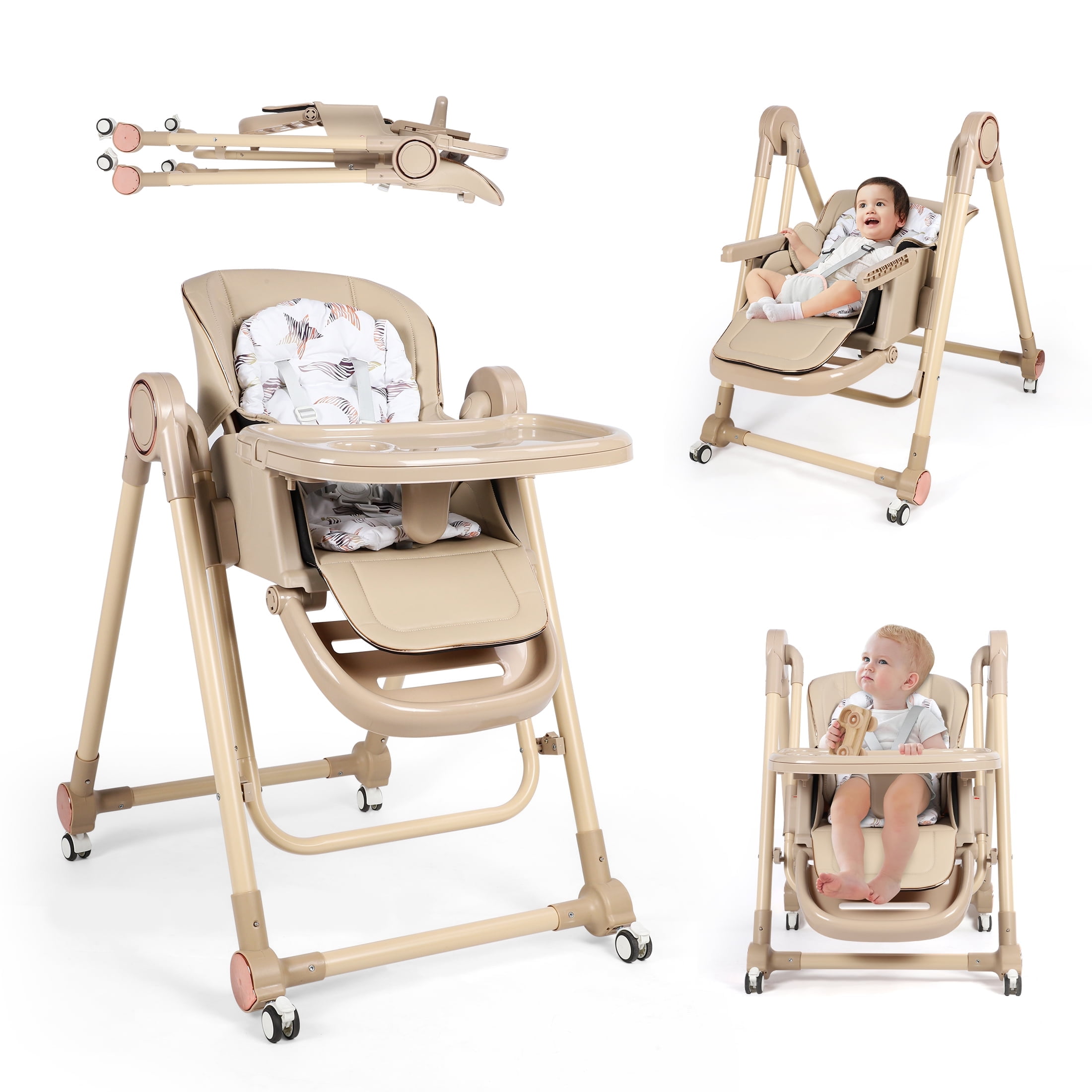 Loewten 3-in-1 Baby High Chair,Convertible Baby Swing,Foldable Infant Dining Chairs Seat with Wheels for Babies and Toddlers,Brown