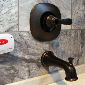 – Water-resistant design for use in the bathroom, kitchen and outdoors