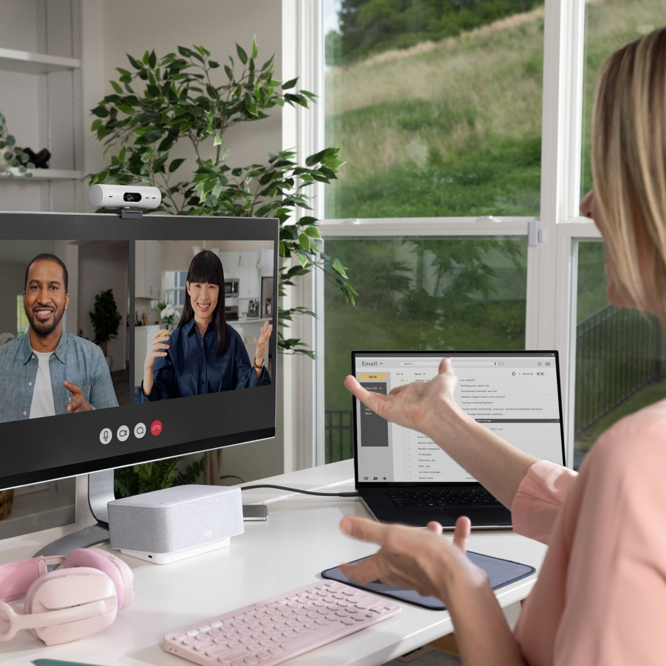 Logitech Brio 500 Full HD Webcam with Auto Light Correction,Show Mode, Dual Noise Reduction Mics, Webcam Privacy Cover, Works with Microsoft Teams, Google Meet, Zoom, USB-C Cable – Off White