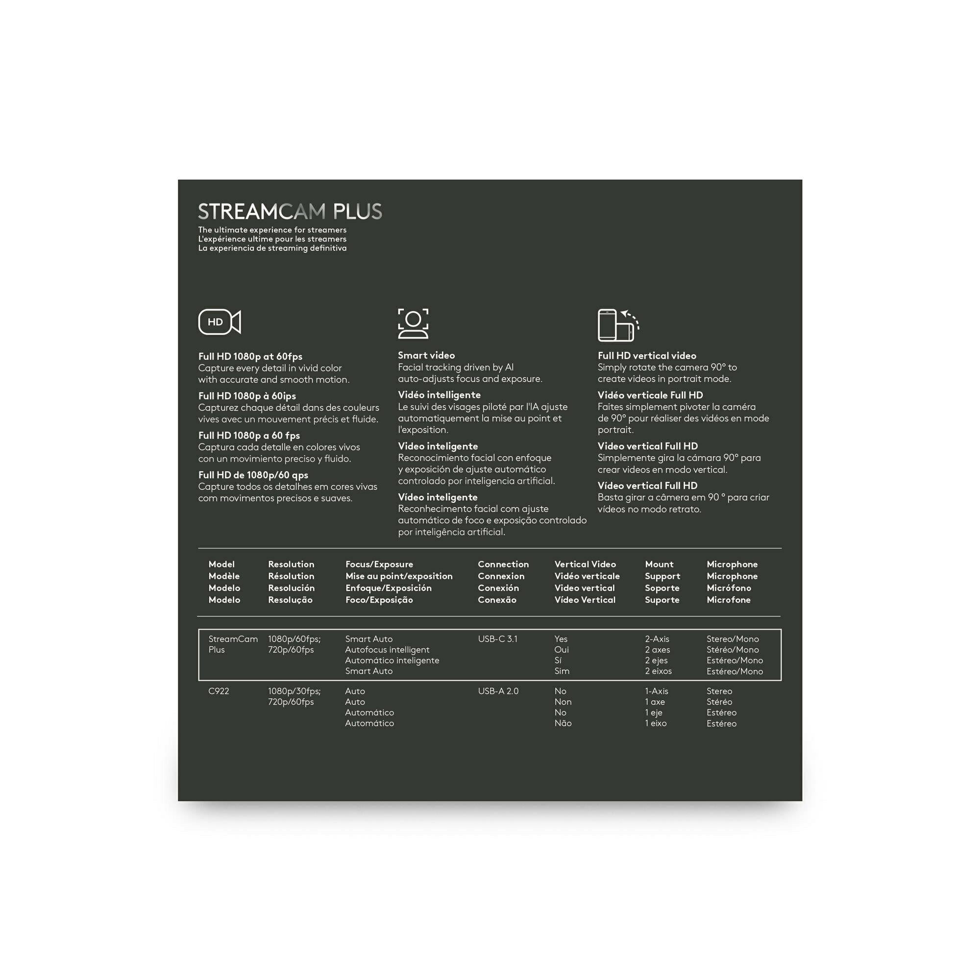 Bundle Includes: Logitech StreamCam Plus Webcam with Tripod (Graphite) and Webcam Stand with Selfie Ring Light Features: The StreamCam records Full HD 1080p at 60fps for smooth, precise video streaming. It also supports Full HD vertical video, optimized for smartphones. Clear Capture: It has features that keep you clear and focused on the camera with facial-tracking smart auto-focus and exposure. Built-in image stabilization reduces camera shake. Capture Software: Logitech’s Capture software lets you enhance content with multiple cameras, graphic overlays, video transitions, and other professional studio controls. Also Includes: Monitor and tripod-ready mounts for versatile camera positioning.