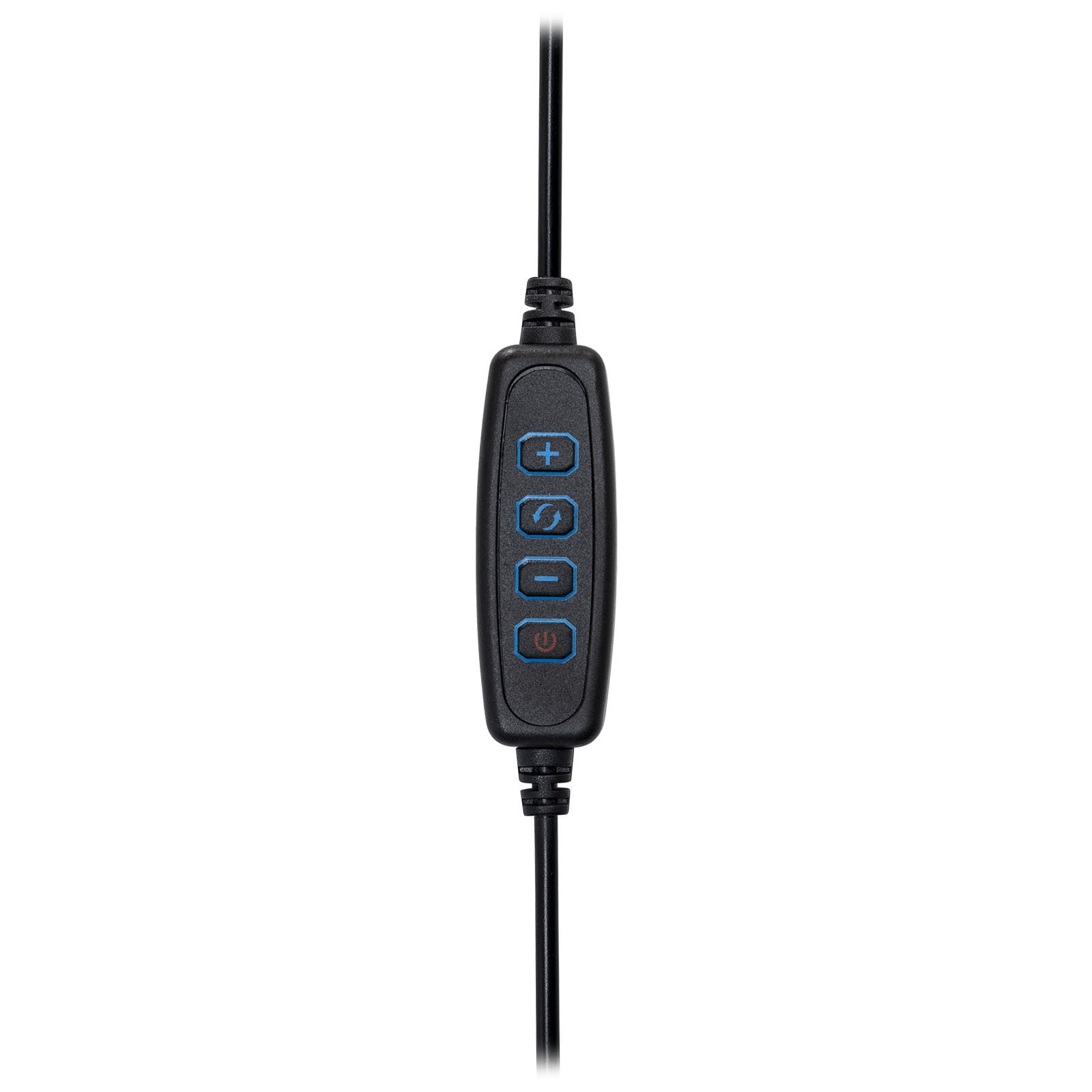 The kit comes with easy-to-use features such as a 360-degree rotating gooseneck arm, which allows you to adjust to any angle you like. It also has a clip for attaching to a desk, USB connectivity and a Bluetooth remote control shutter release. Easily access the brightness, light mode and on/off controls.