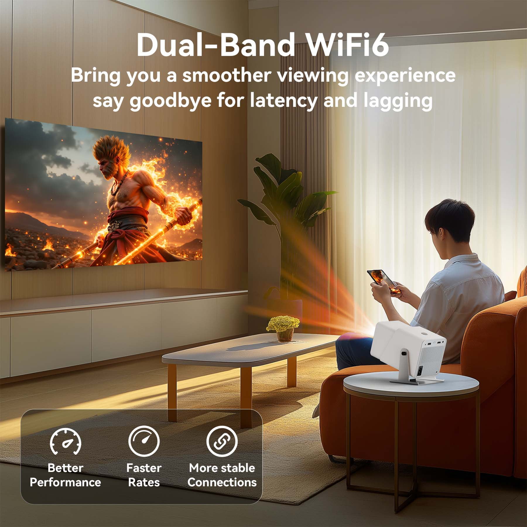 [Auto Keystone/4K Support]Losei Z10 Smart Projector with WiFi 6 and Bluetooth 5.2,Wireless Mirroring, 220” Display for Home Theater & Outdoor Movies