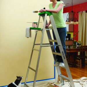 Aluminum stepladder is perfect for low-height and medium-height jobs. Multifunctional top features tool slots for holding tools, paint and hardware. Slip-resistant rubber feet, pinch-resistant spreader braces and steel gusset bracing ensure your safety when working. Stepladder meets OSHA requirements and is ANSI certified.
