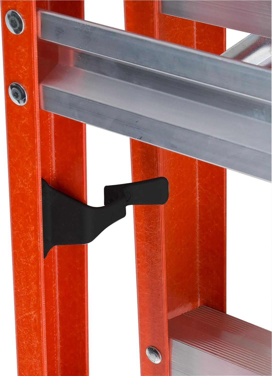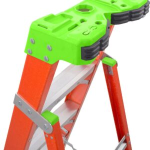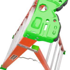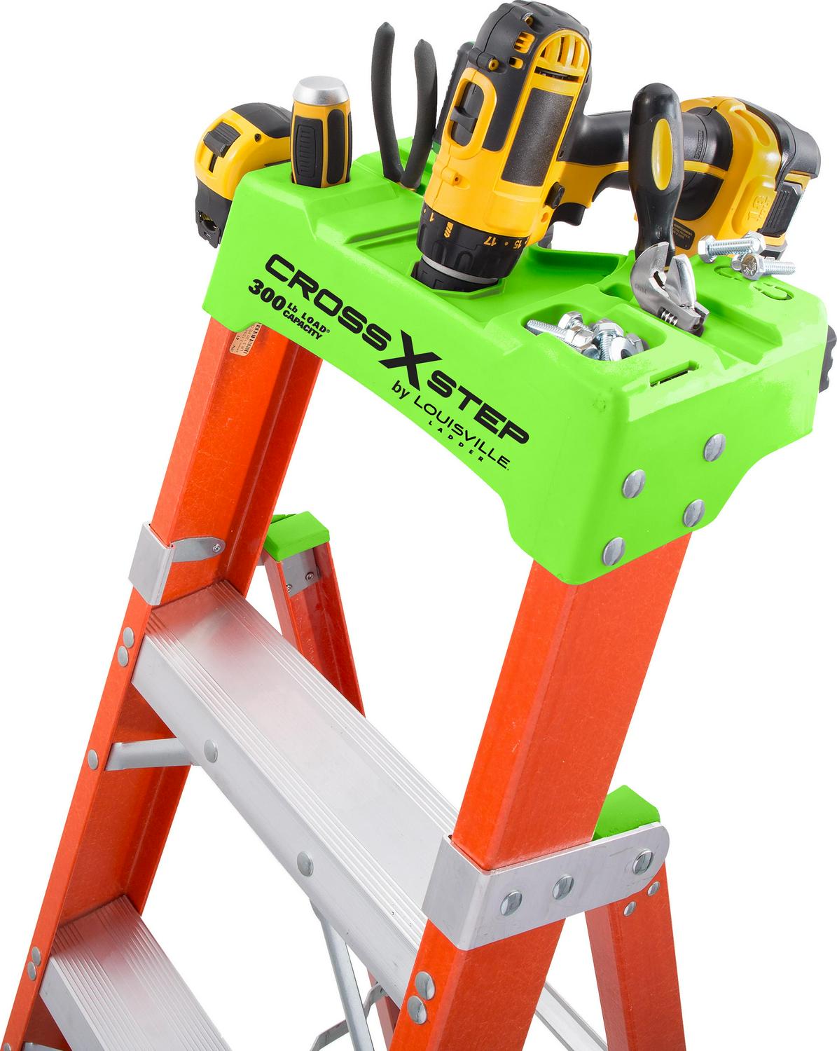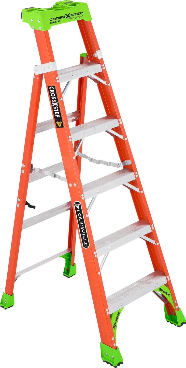 This Louisville 6 foot non-conductive fiberglass step ladder has a load capacity of 300lbs, rated ANSI Type IA. This ladder is equipped with the new and innovative Raptor Top with magnet and multiple tool slots, SHOX impact absorption system, new Raptor boots with non-marring bonded tread mechanically fastened to the upper boot to create a secure slip-resistant footing, inside spreader braces, wide back braces, and double-rivet step construction. The Louisville FS1506 step ladder meets or exceeds the safety standards set by ANSI, CSA, and OSHA.