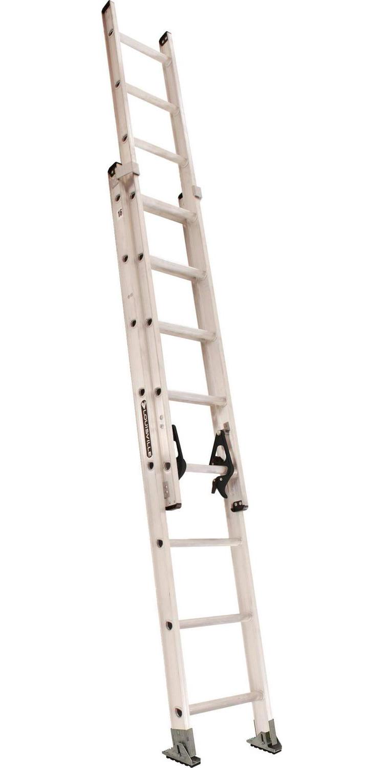 Tackle out-of-reach chores easily and safely with the Louisville Ladder AE2216 16′ Aluminum Extension Ladder. Its sturdy construction and design make this 300 lb load capacity your go-to choice for gutter maintenance and ceiling repairs. This type IA ladder offers D-shaped rungs that provide a solid and flat foot point of contact. It also features safety swivel shoes for a secure ground placement. When in use, the incorporated mar-resistant rail end caps prevent damage to wall surfaces. Whether you’re painting hard to reach areas or fixing your roof shingles, the solid I-beam construction with dual locking mechanisms allows this aluminum single ladder to maintain an easy and safe extension.
