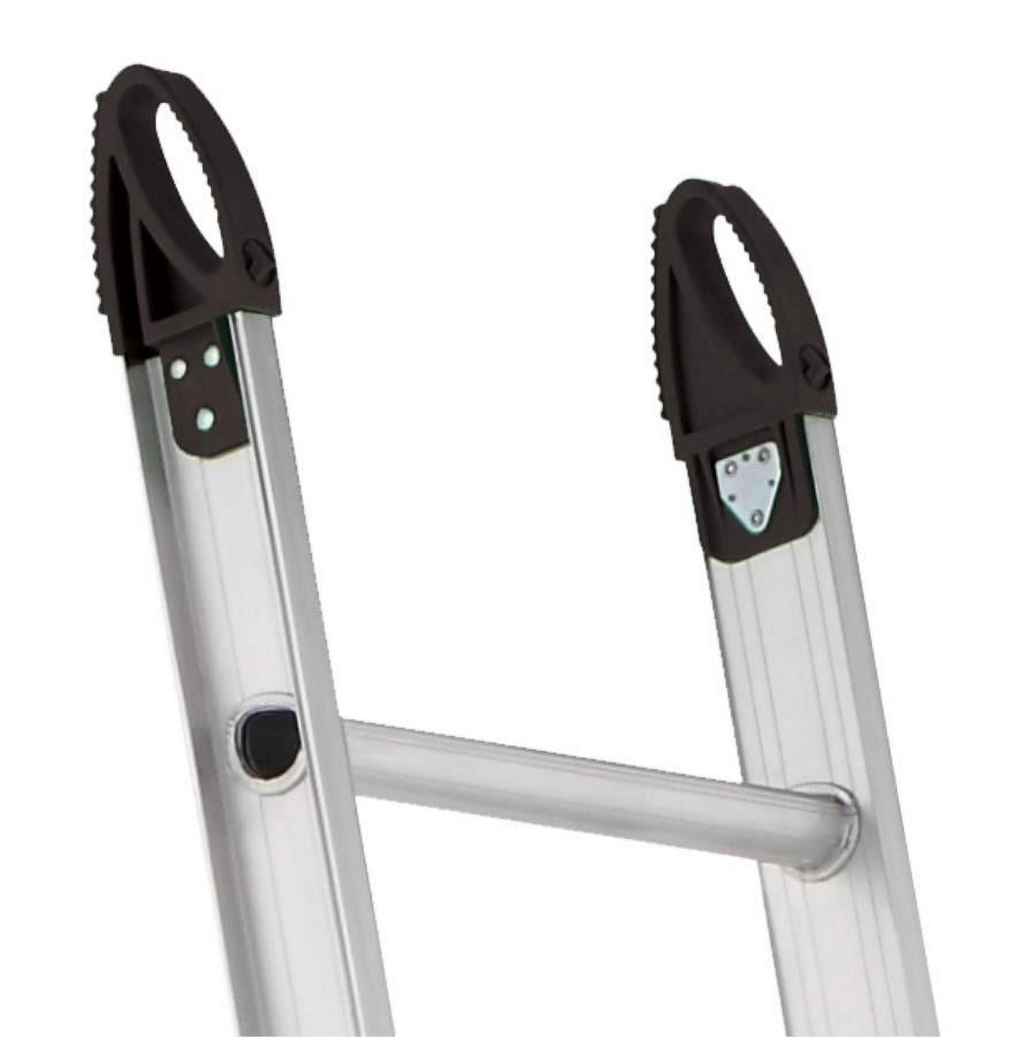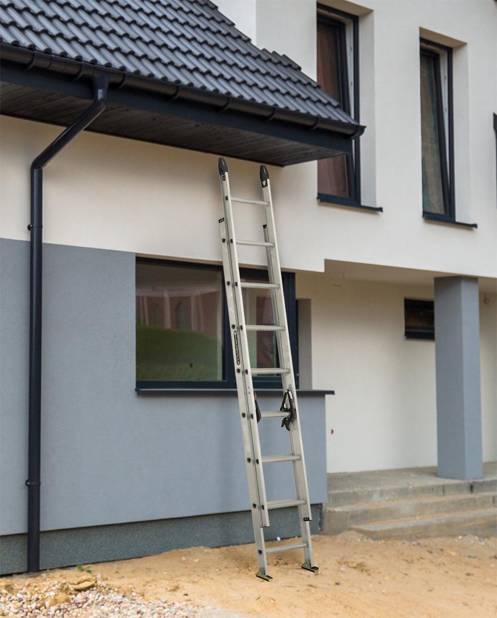 – A ladder that is built to last with modified I-beam side rail extrusions the modified I-beam shape is made for strength and is lightweight, the interlocking rails allow for easy extension and dissension.