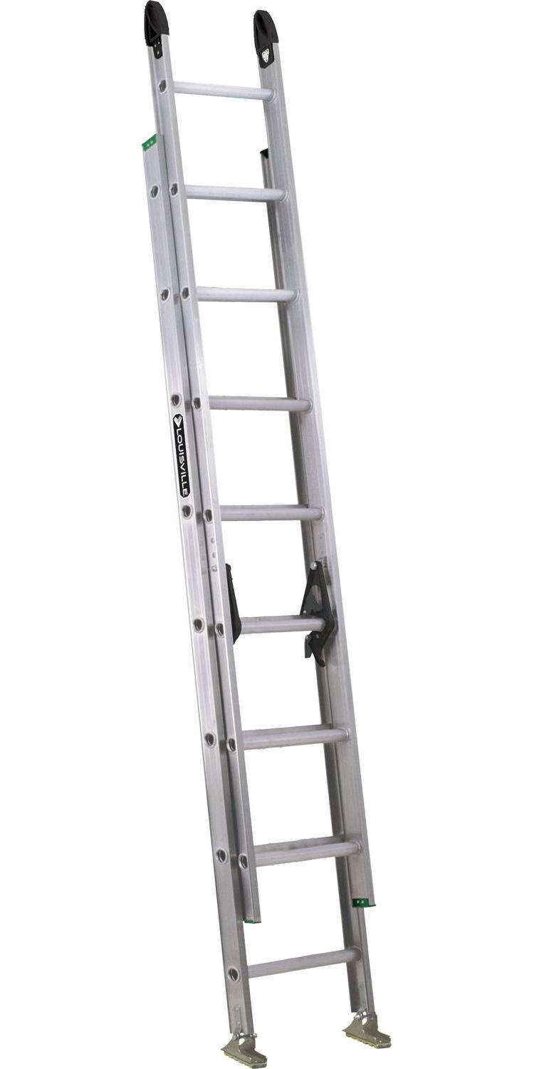 This louisville ladder 16-foot aluminum extension ladder offers a beneficial addition to any home. You will be amazed by our new MAX LOCK system, a patented secure and strong rung lock. The easy-to-use quick latch locking mechanism offers added safety and security by preventing the rung lock from disengaging the rung. You will be comfortable using this extension ladder on your house. It features a proGrip, and a tread integrated end cap that helps stabilize the ladder and protect landing surfaces. It’s resistant to slipping and will limit potential damage to the landing surface. This ladder can extend up to 9-feet. It allows you to reach heights of 15-feet, which assumes a 5’8″ person. It features a modified I-beam for a more stable connection, which also restricts twisting. The safety shoes on this 16′ step ladder can be swivelled. Use them in tread-down or spike positions depending on the terrain. The heavy-duty foot also features ice picks for stability in ice or winter conditions. This unit meets or exceeds ANSI-rated type 2 safety standards.