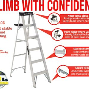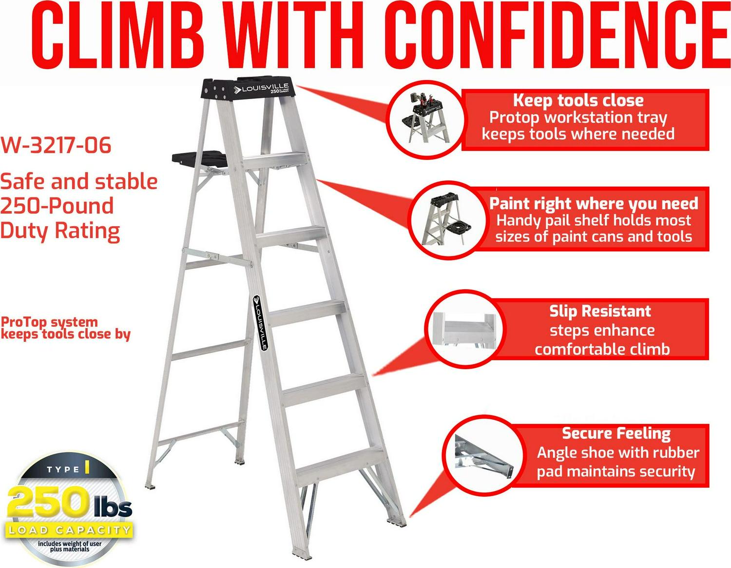 Louisville Ladder 6′ Aluminum Step Ladder, 10′ Reach, 250 lbs Load Capacity, W-2112-06S