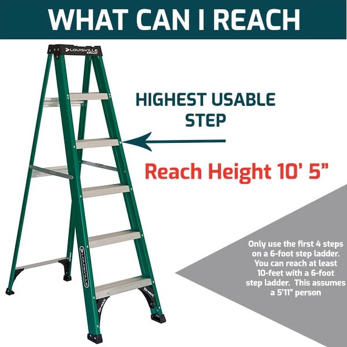 Louisville Ladder 6′ Fiberglass Step Ladder, 10′ Reach, 225 lbs Load Capacity, FS4006