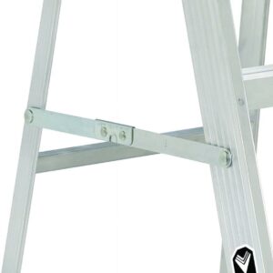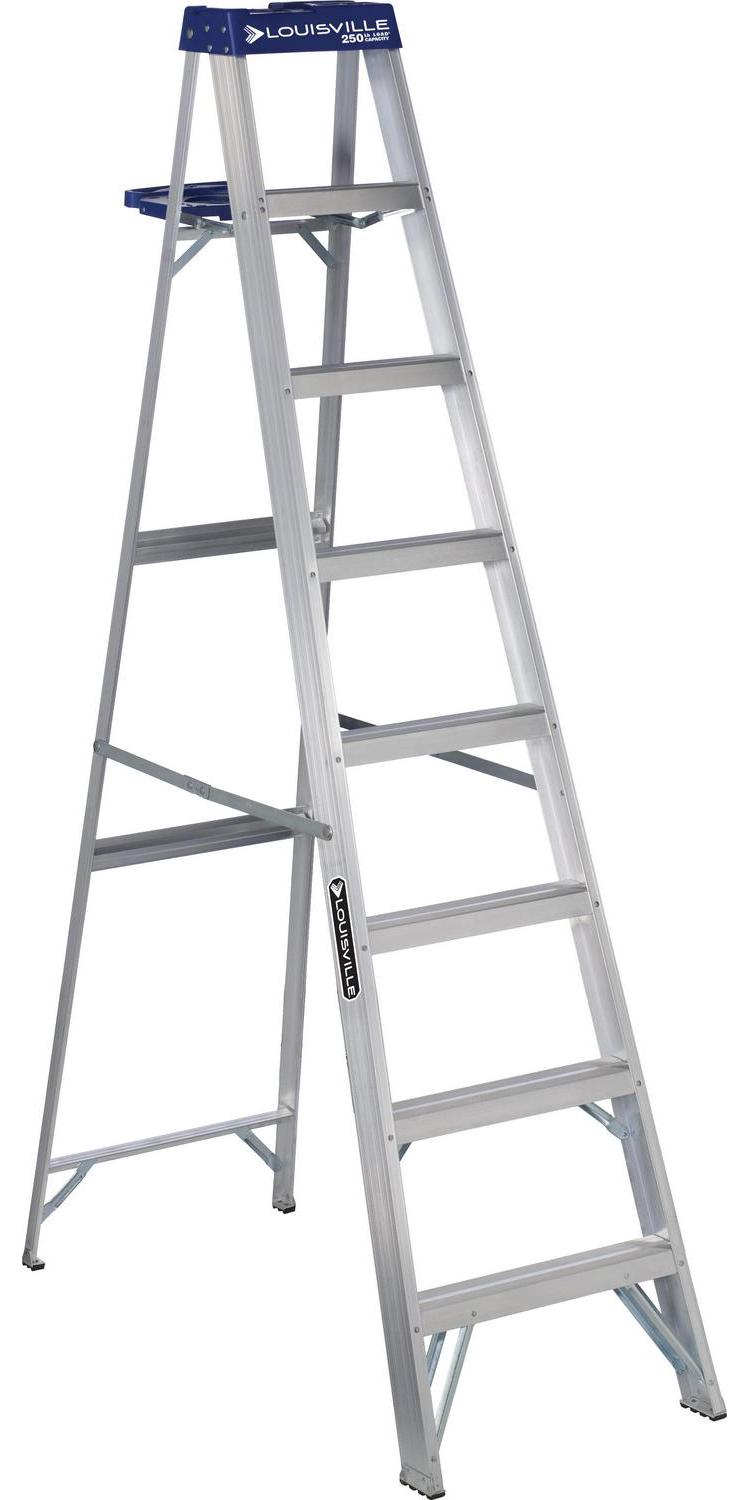 Stepladder, Material Aluminum, ANSI Type I, Ladder Height 8 ft., Load Capacity 250 lb., Number of Steps 7, Base Spread 51-5/8 In., Bottom Width 24-5/8 In., Step Depth 3 In., Step Tread Ribbed, Series AS2100, Includes Structural Molded Top with Tool Slots Features Item: Stepladder Step Depth: 3″ Load Capacity: 250 lb. Stepladder Item: Stepladder Bottom Width: 24-5/8″ Series: AS2100 Includes: Structural Molded Top with Tool Slots Number of Steps: 7 Ladder Height: 8 ft. Step Tread: Ribbed ANSI Type: I Material: Aluminum Base Spread: 51-5/8″