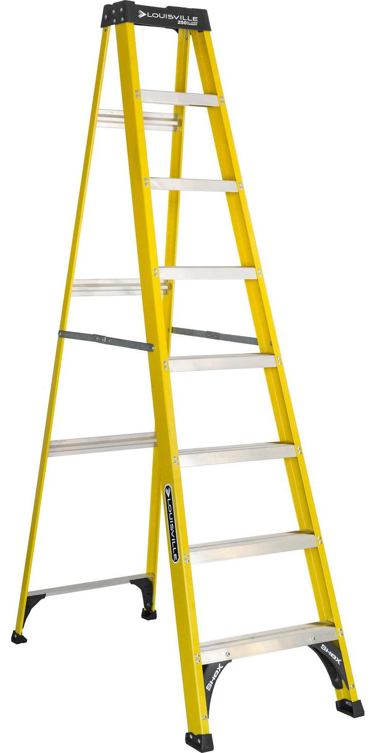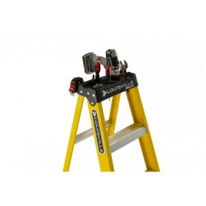 This non-conductive Louisville Ladder 8′ Fiberglass Step Ladder is essential for tasks that are related to electrical maintenance, indoors and out, at home or at the jobsite. It can be used to change light bulbs or access roofing and much more. This maintenance ladder has a ProTop with multiple slots for holding power and hand tools, paint cans and other items. It also comes with a paint pail hook and has slip-resistant rubber feet and deep, slip-resistant aluminum steps, which are riveted in channels for increased stability. An additional pinch-resistant spreader brace ensures that this Louisville Ladder 8′ Fiberglass Step Ladder stays in place when you are climbing it. It is easy to use and can be stored in a garage or up against the house when the job is finished. It is ANSI Type 1 rated to hold a maximum of 250 lbs of tools and people combined.