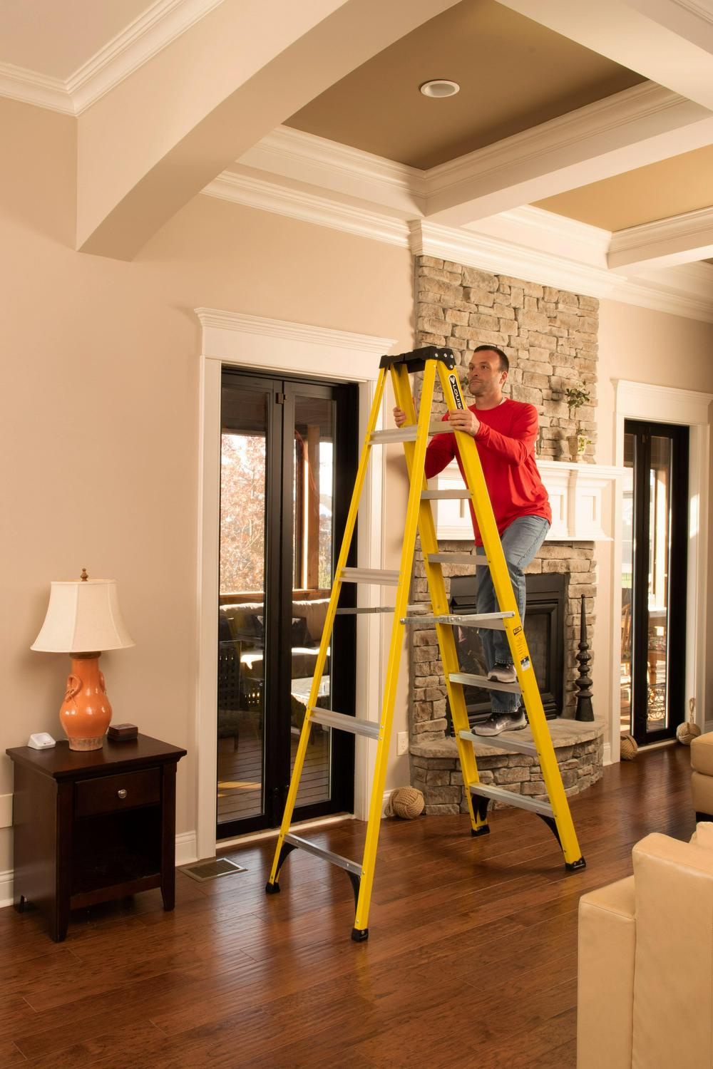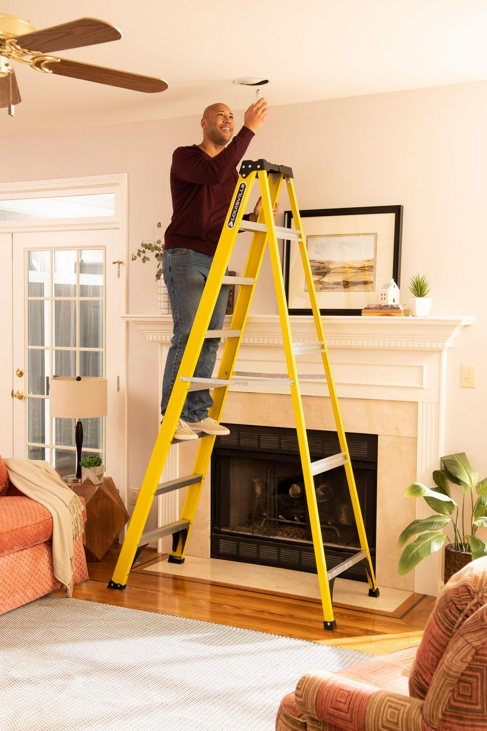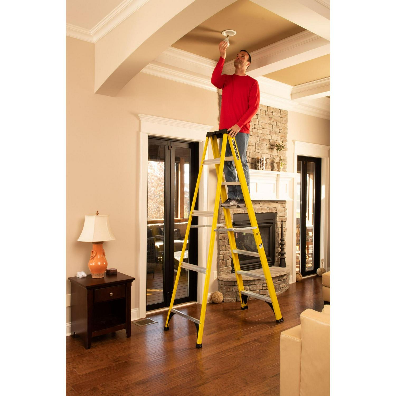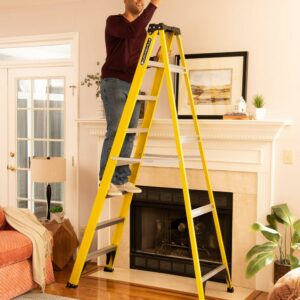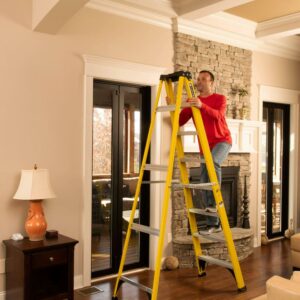 - Superior safety, this stepladder is made of exceptional quality, non-conductive fiberglass