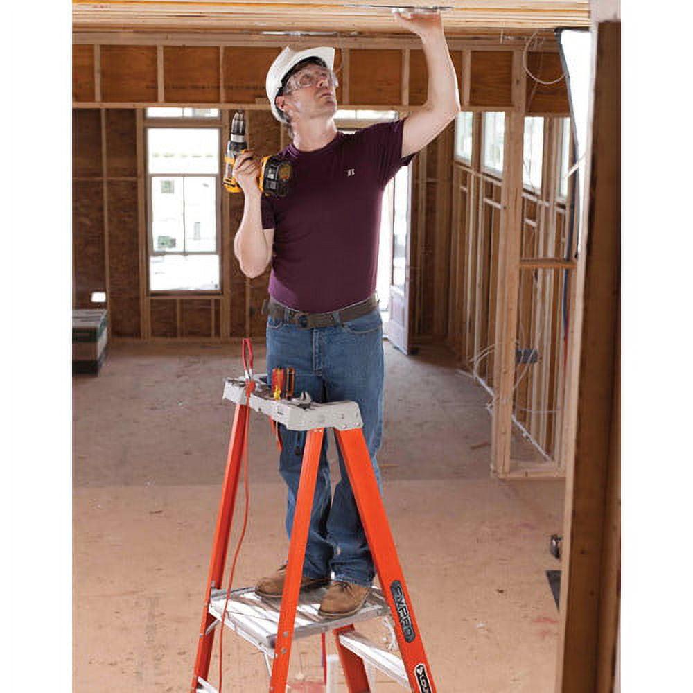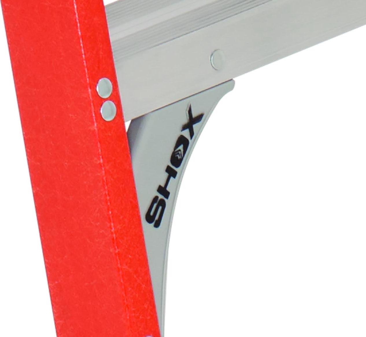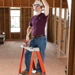 This Louisville 4 foot Pinnacle Platform step ladder has a 300lb load capacity, rated ANSI Type IA. It features a 30″ extended handrail (perfect tool belt height) and a 30% larger platform area for added comfort and safety. This ladder is equipped with the innovative ProTop with multiple tool slots and magnet, SHOX impact absorption system, Raptor boots with non-marring bonded tread mechanically fastened to the upper boot to create a secure slip-resistant footing, wide back braces, and double-rivet step construction. The Louisville FXP1704 Pinnacle Platform ladder meets or exceeds the safety standards set by ANSI, CSA, and OSHA.