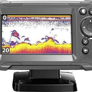 – DARK BODY AND MOUNT: The Lowrance fish finder has a dark grey colored frame and body with an easy-to-assemble black mount.