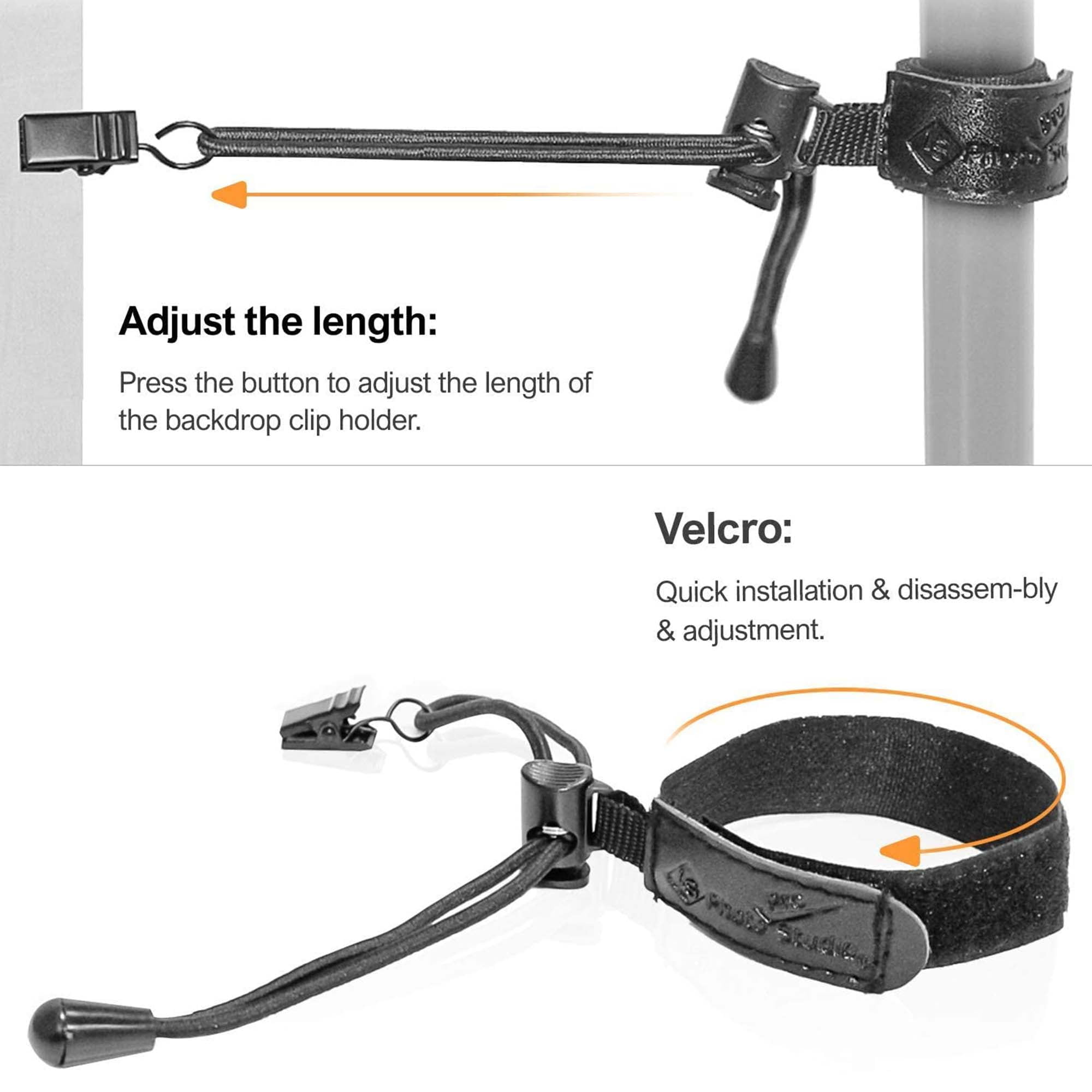 Backdrop Support System with a Carry Bag Perfect Lightweight Aluminum Solid Safety 3 Legs Stages Premium Quality Support Bars Height Adjustable: Max 7.3 ft. Width Adjustable: Max 10.16 ft. Guarantees Durability, Safety, Balance, and Life Time Keeping Bigger Stand Diameter, Thicker Cross Bars & Stand Backdrop Holder, 4 pcs Precise and Fast Adjustments Fast Installation / Disassembly Easy Adjustment Multi-functional To remove wrinkles and unevenness shown on the muslin Photo Studio Photography Muslin Backdrop Clamps, 2 pcs 3.75in long Material: Nylon Essential Item in Any Studio Setup Light Weight and Easy to Use Grips the background to the backdrop stand Studio Light Stand Sandbags, 2 Set 9 x 17 Inch Dimension Durable Nylon Material The sandbags are empty and can be filled with dirt, sand, pea gravel, and so on. Holds 18lbs