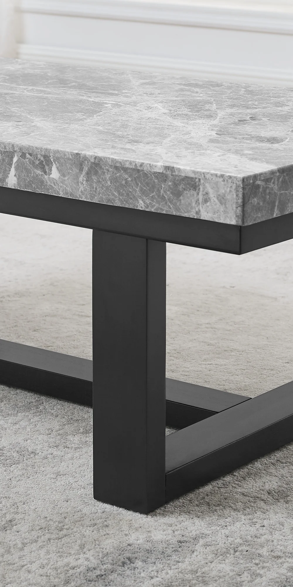 The straightforward style of the Lucca Coffee Table allows the natural beauty of the gray marble top to shine through. A hand-stained espresso wood base highlights the character and grain of the wood while clean, geometric lines frame the table without feeling heavy. Easy elegance and transitional styling makes the Lucca Coffee Table the perfect centerpiece of any living room. Features: Crafted from Poplar solids, Birch veneers, MDF, gray marble veneer Espresso Wood Finish, Gray Marble Crafted from poplar solids, birch veneers, engineered woods and a gray marble veneer top Kiln-dried wood helps prevent warping, splitting, cracking Each marble top is crafted by nature with unique characteristics that vary slightly so no two pieces will be exactly alike A 55 mm gray marble veneer top sits beautifully atop the wood frame Easy Assembly, all tools included Specifications: Product Weight: 106.9 Product Dimensions: 48″W x 26″D x 18″H