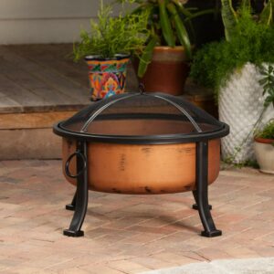With a glowing copper-look finish, the Lumina Wood-Burning Fire Pit brings a bright and cheery touch to your outdoor space. Lovely for any Tuscan villa or Spanish-revival courtyard, the Lumina will keep the chill off your outdoor living space for many brisk evenings to come. Comes complete with a mesh screen to contain sparks and a multipurpose fire tool/screen lifter.