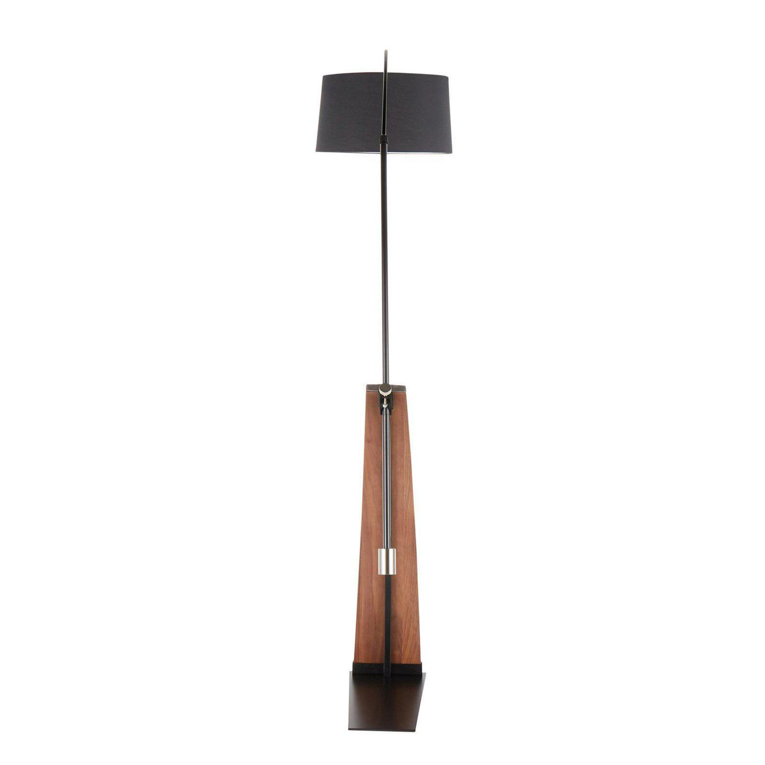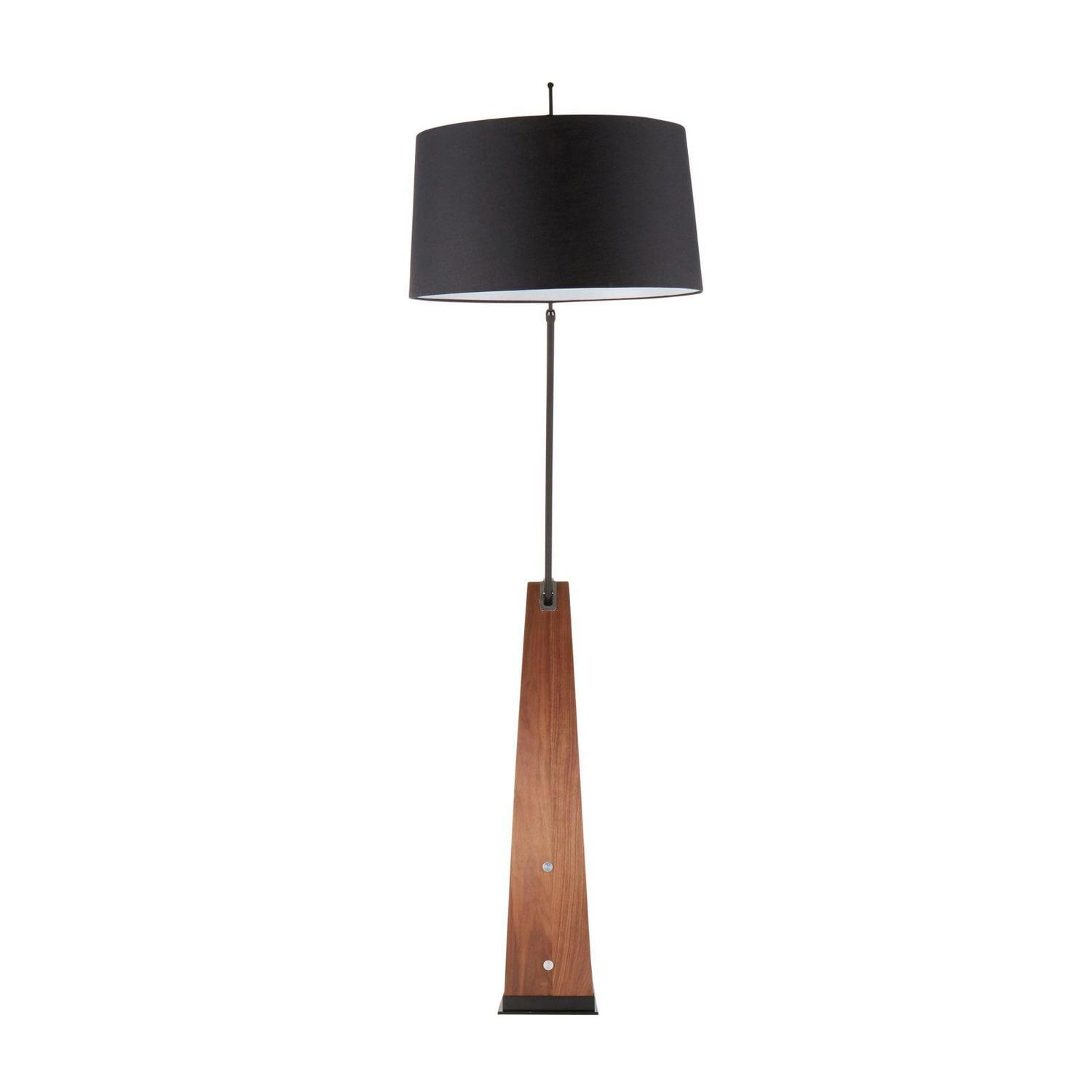 Robyn Mid-Century Modern Floor Lamp in Walnut Wood and Black Shade