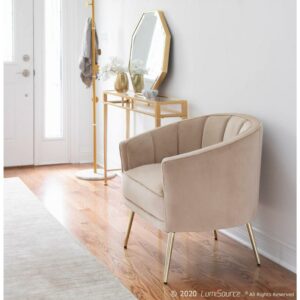 Fabulous and chic, the LumiSource Tania Accent Chair is an updated take on a classic. Featuring sleek tufted velvet upholstery and gold metal legs, this chair is perfect for any sitting area. The Tania Accent Chair is available in a variety of colors.