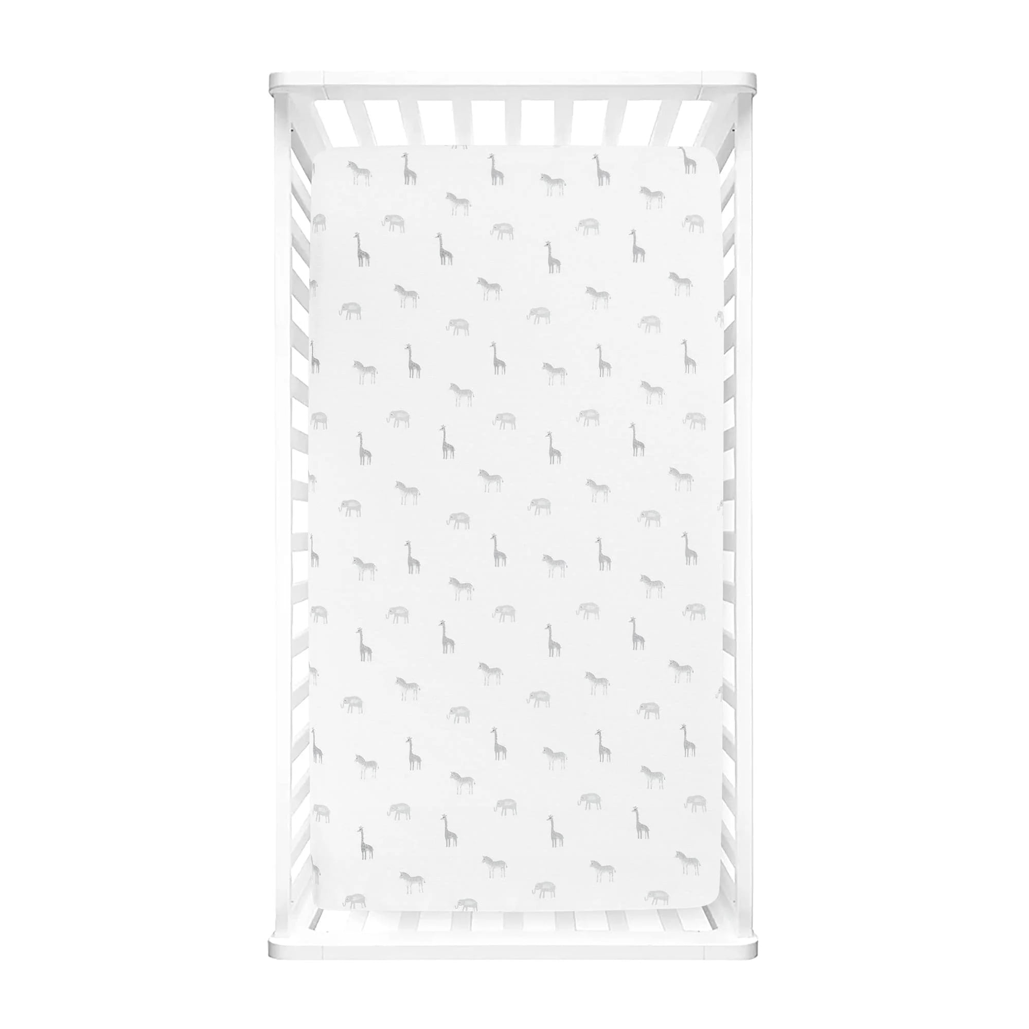 Lush Decor Baby Fitted Crib Sheet 2-pc set includes: 2 Fitted Crib Sheets 2-Pc Set 2 Fitted Crib Sheets: Each 52″H x 28″W + 9″ Drop Material : 100% Organic Cotton Jersey Pattern: Animal print