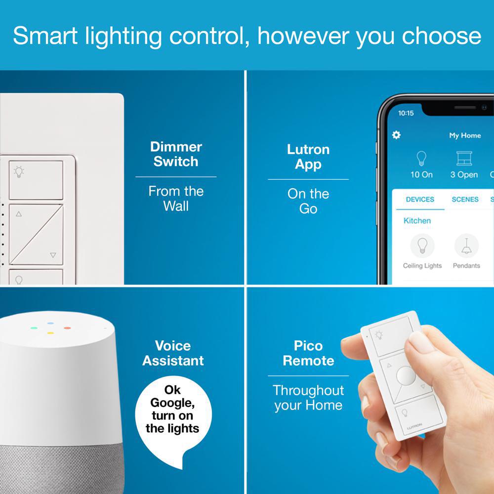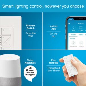 – CONTROL YOUR WAY: Caseta puts the smarts in the switch so you can control your lights a variety of ways via the free Lutron app, your voice, or from the wall. You can create personalized schedules to turn on, off, or dim lights at set times to best fit your everyday routines, or activate favorite lighting scenes with the touch of a button