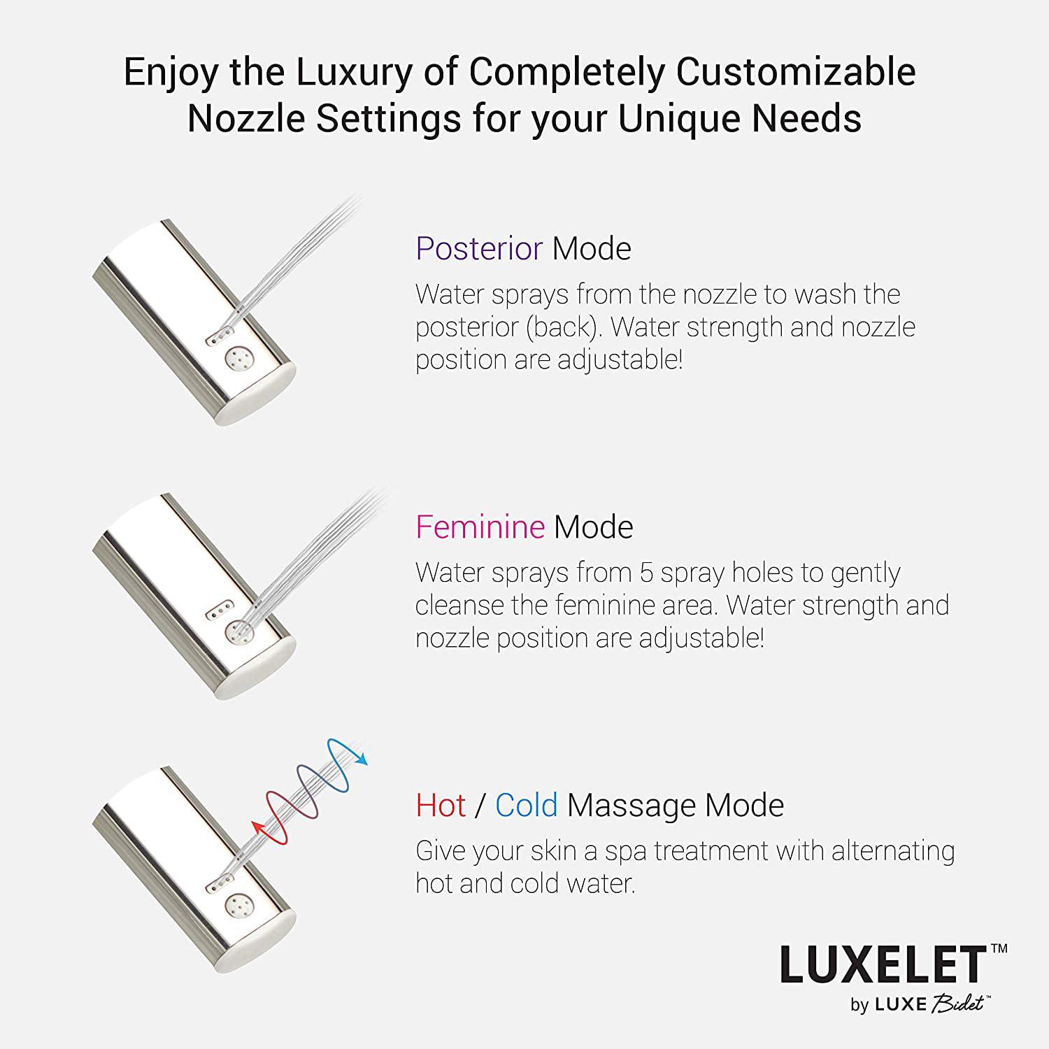 LUXE Bidet Luxelet E850 Electric Bidet Seat for Elongated Toilets with Warm Air Dryer and Temperature Control
