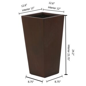 LuxenHome Rustic Brown MgO 24.2in. H Tall Tapered Square Planter