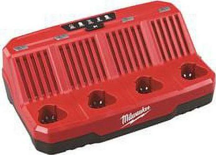 The M12 4 Bay Sequential Charger Reduces The Amount Of Time Spent Changing Out Batteries, Increasing Productivity On The Jobsite Its Slim Design Makes It The Perfect Solution For A Bench Top, As Well As Storage And Transportation Of Packs On And Off The Jobsite Featuring Redlink Intelligence, It Communicates Directly With The Battery To Monitor Cell Voltage, Temperature And Charge Status To Optimize The Performance And Extend The Life Of The Pack The Charger Offers A Compact Design, Integrated Hang Holes For Vertical Mounting And A Skip Button To Select A Desired Battery Accepts Up To 4 M12 Battery Packs Sequentially Charges Batteries Compact Design With Wall Mounts
