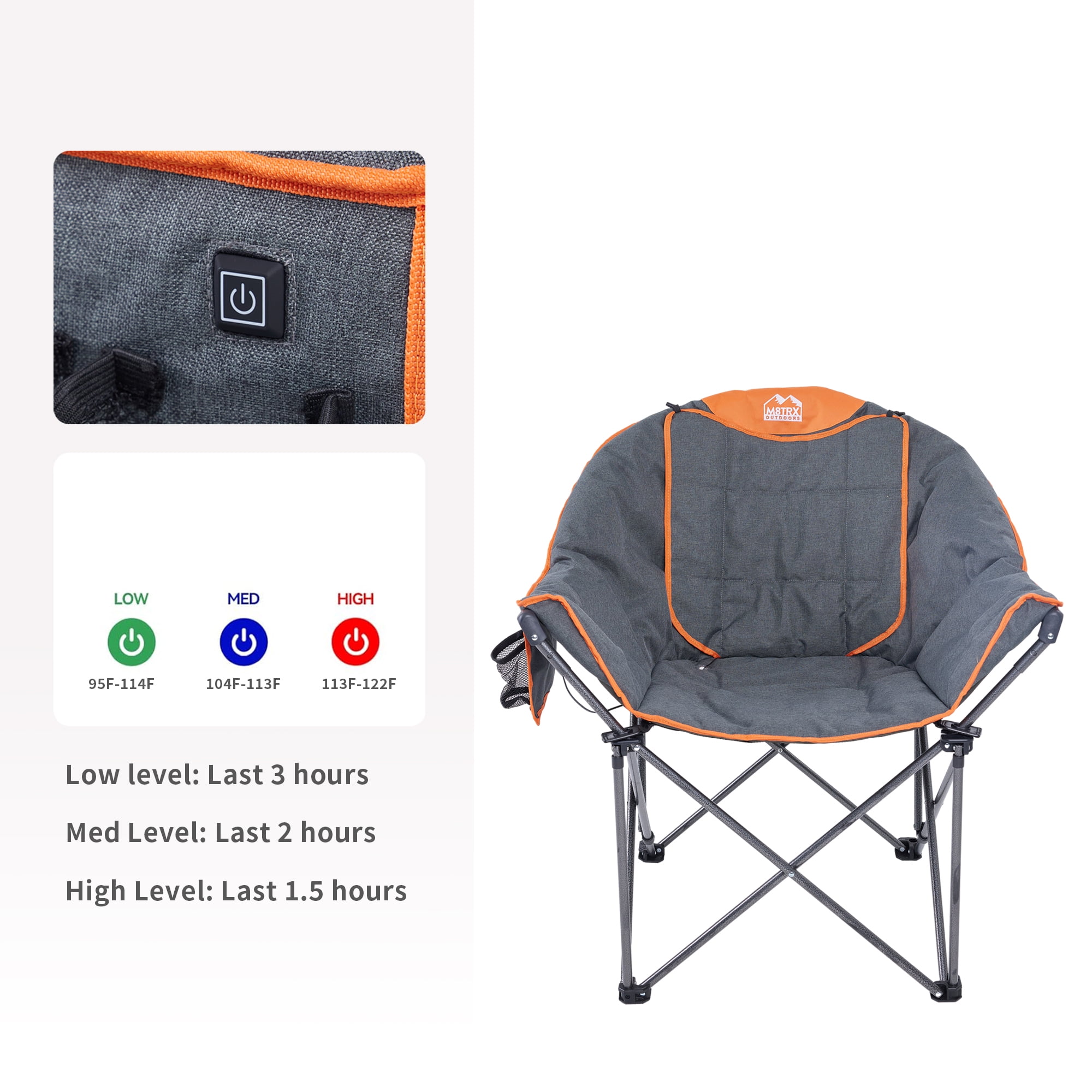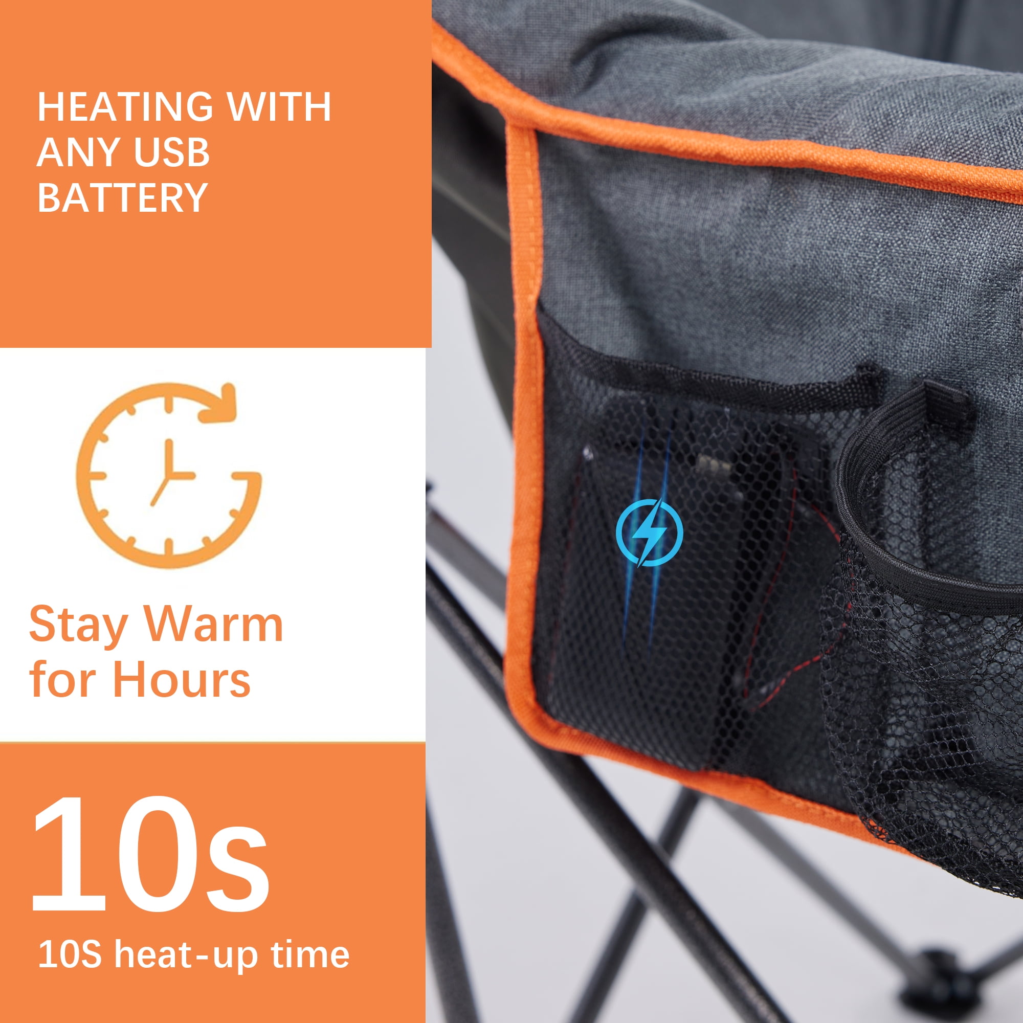 M8TRX Heated Camping Chair, Extra-Wide Outdoor Folding Chair, Supports 350 lbs., USB Charging Port, Heated