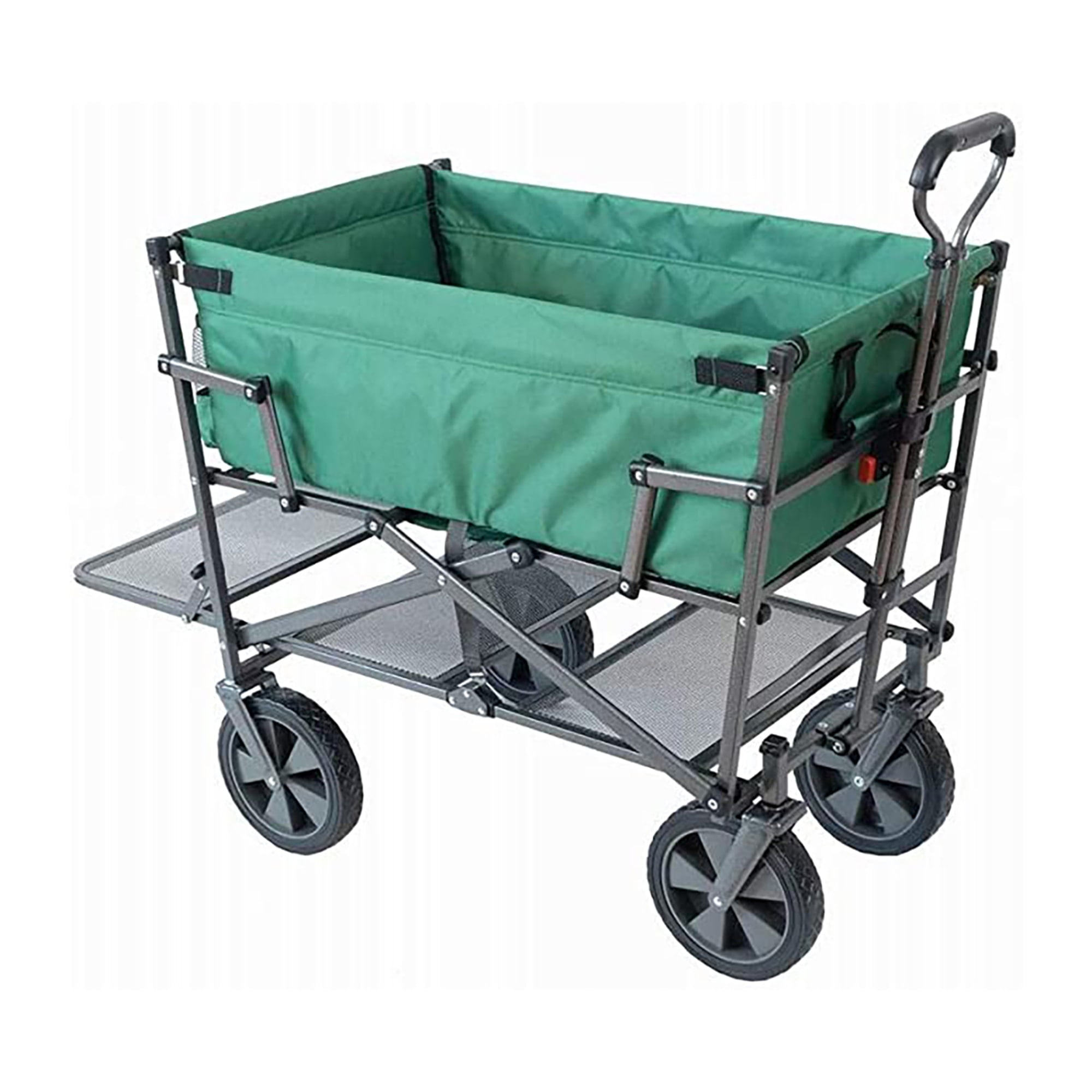 Mac Sports Double Decker Wagon: Green – Collapsible Outdoor Utility Garden Cart, 150 Lb Capacity, 32.5 x 17.5 x 10.5″