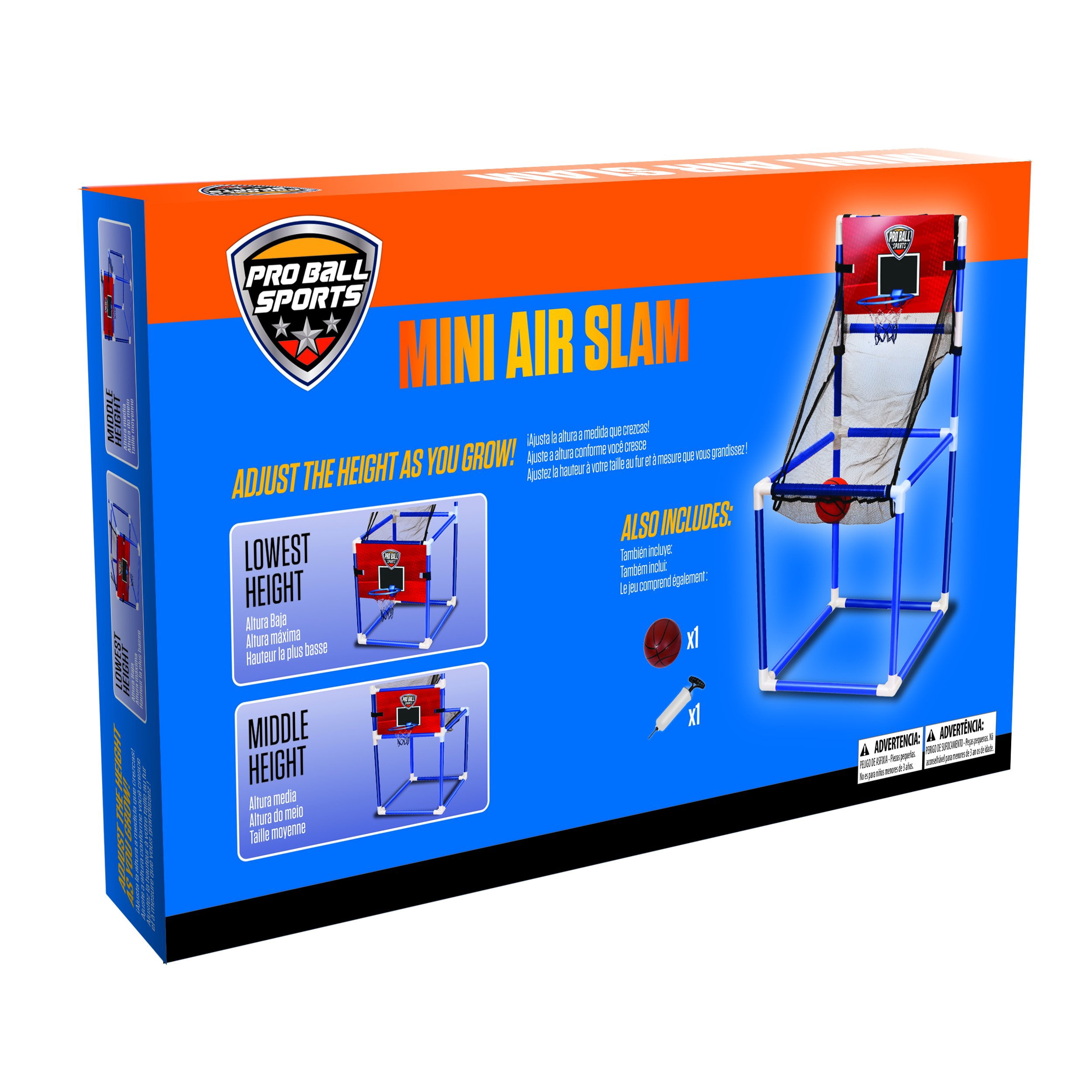 When the weather keeps kids from playing outside, this indoor game will deliver plenty of fun. With a lightweight and portable design, Pro Ball Mini Air Slam sets up almost anywhere. Mini Air Slam’s modular tube design and Velcro fasteners makes assembly quick and easy so you can spend more time playing. The Mini Air Slam comes with three height positions and can be adjusted to grow with your child over the years. Create some competition with your friends or challenge yourself to beat a previous score. Recommended for ages 6 years and up. WARNING: CHOKING HAZARD–Small parts. Not intended for children under 3 yrs.