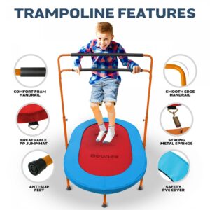 Machrus Bounce Galaxy Mini Oval Rebounder Trampoline with Double Adjustable Handrail and Dual Jumping Surface for Kids and Adults – Orange/Blue/Red