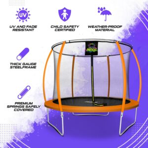 – Safe to Use This Moxie 10 FT Pumpkin-Shaped trampoline with enclosure system is built with TUV standardized solid steel frame. Our child-safety certified trampoline for adults & kids considers safety as the most important usability parameter.