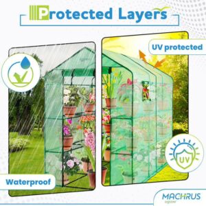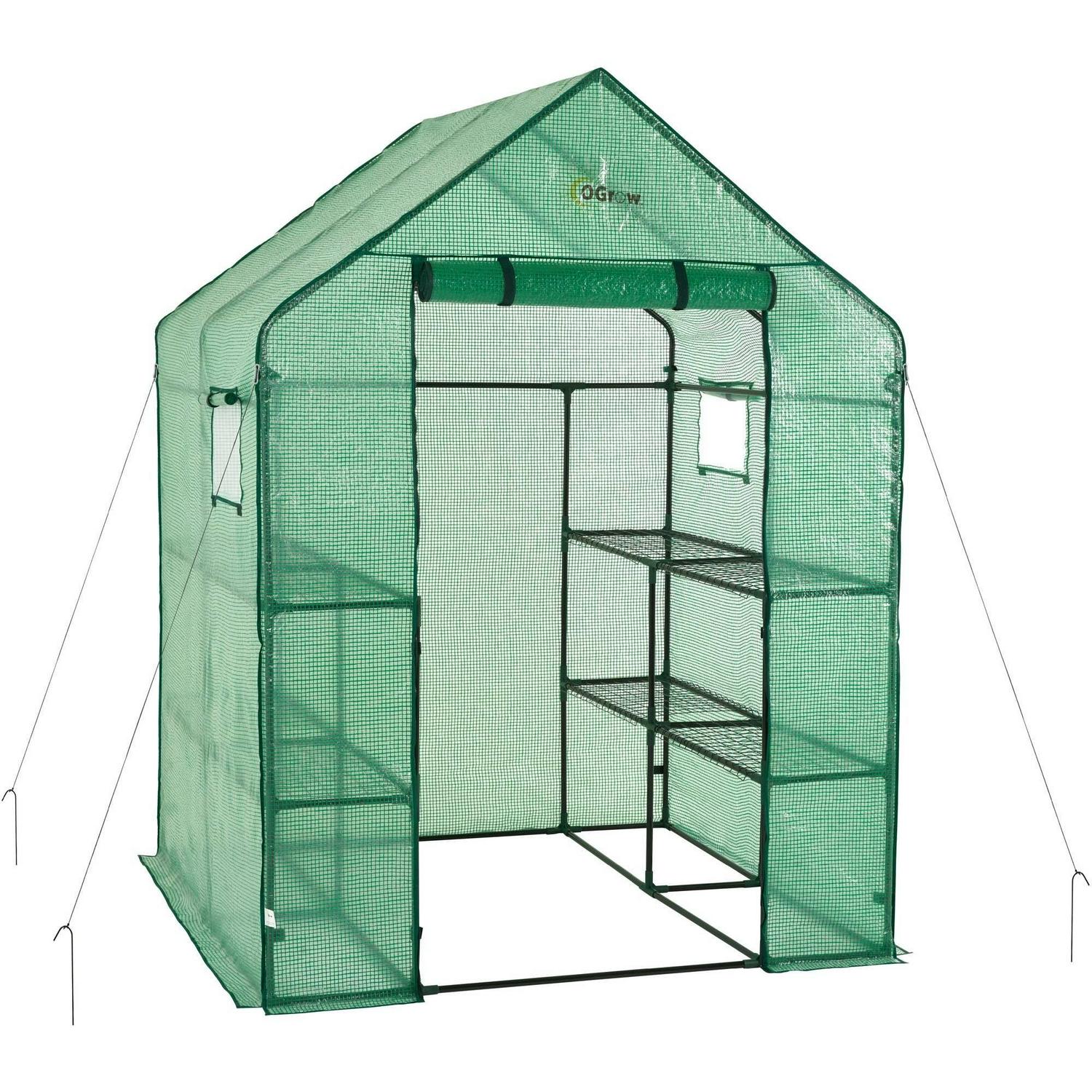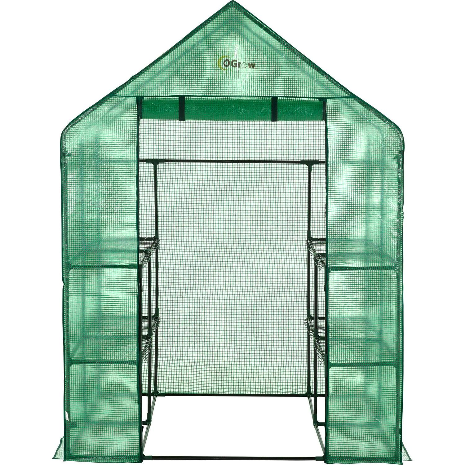 Machrus Ogrow Deluxe Walk-In Greenhouse with 2 Tiers and 8 Shelves – Green Cover