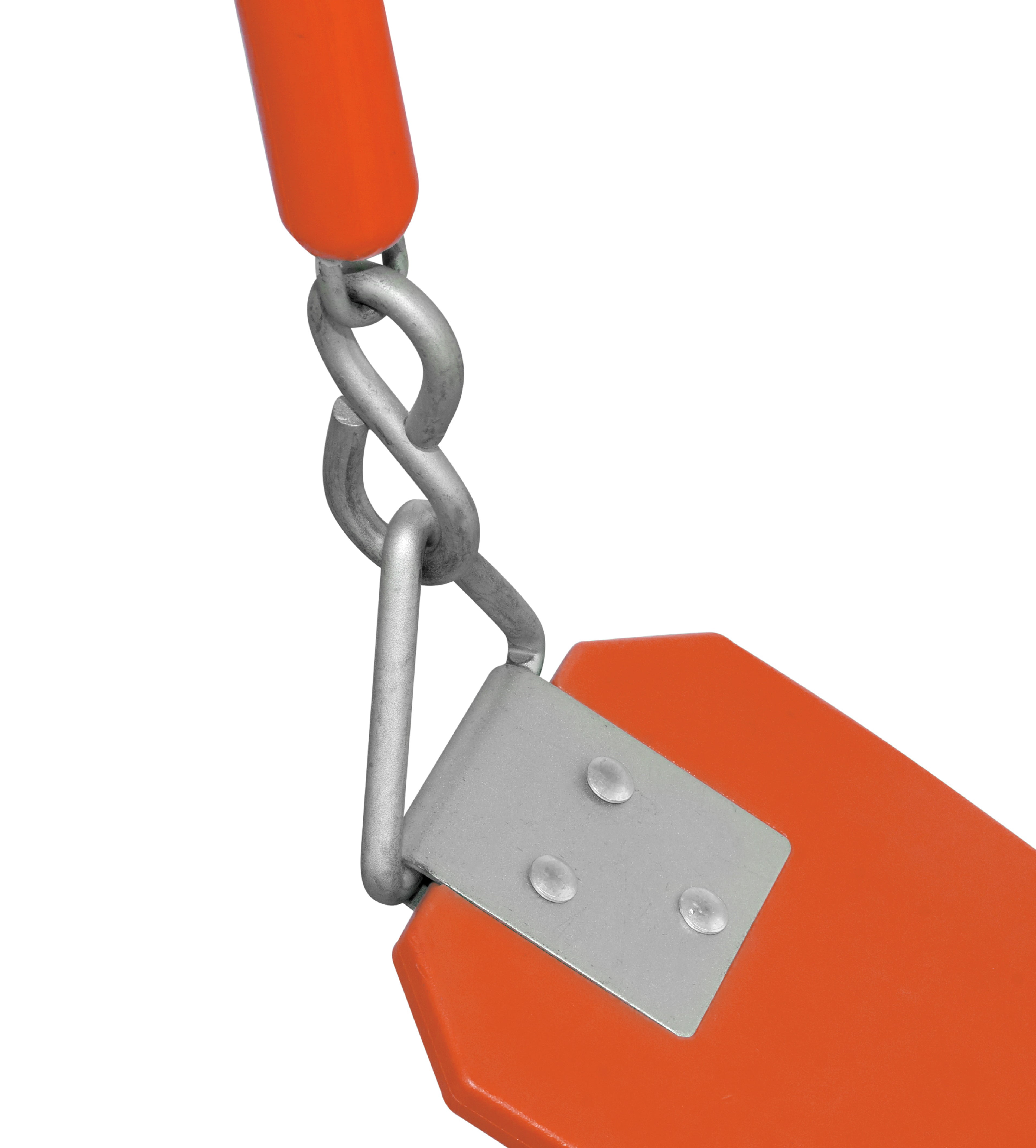The 27” flexible seat is safe and comfortable for the rider, making it a swing your child will be reluctant to leave. The seat isconstructed with highly durable copolymer plastic, with dacromet steel triangle supports designed to be rust-free. The ultimate in heavy-duty, all-weather, rust-proof design! Features: 61” adjustable dacromet chains, designed to be corrosion resistant; 32” covered with PVC coating for pinch-free fun and a more comfortable, secure ride. Use it in your backyard, hang it on trees, attach it to your deck or ceiling or use it on your patio. Kids & adults will all enjoy this Swingan belt swing immensely, providing constant fun and entertainment.