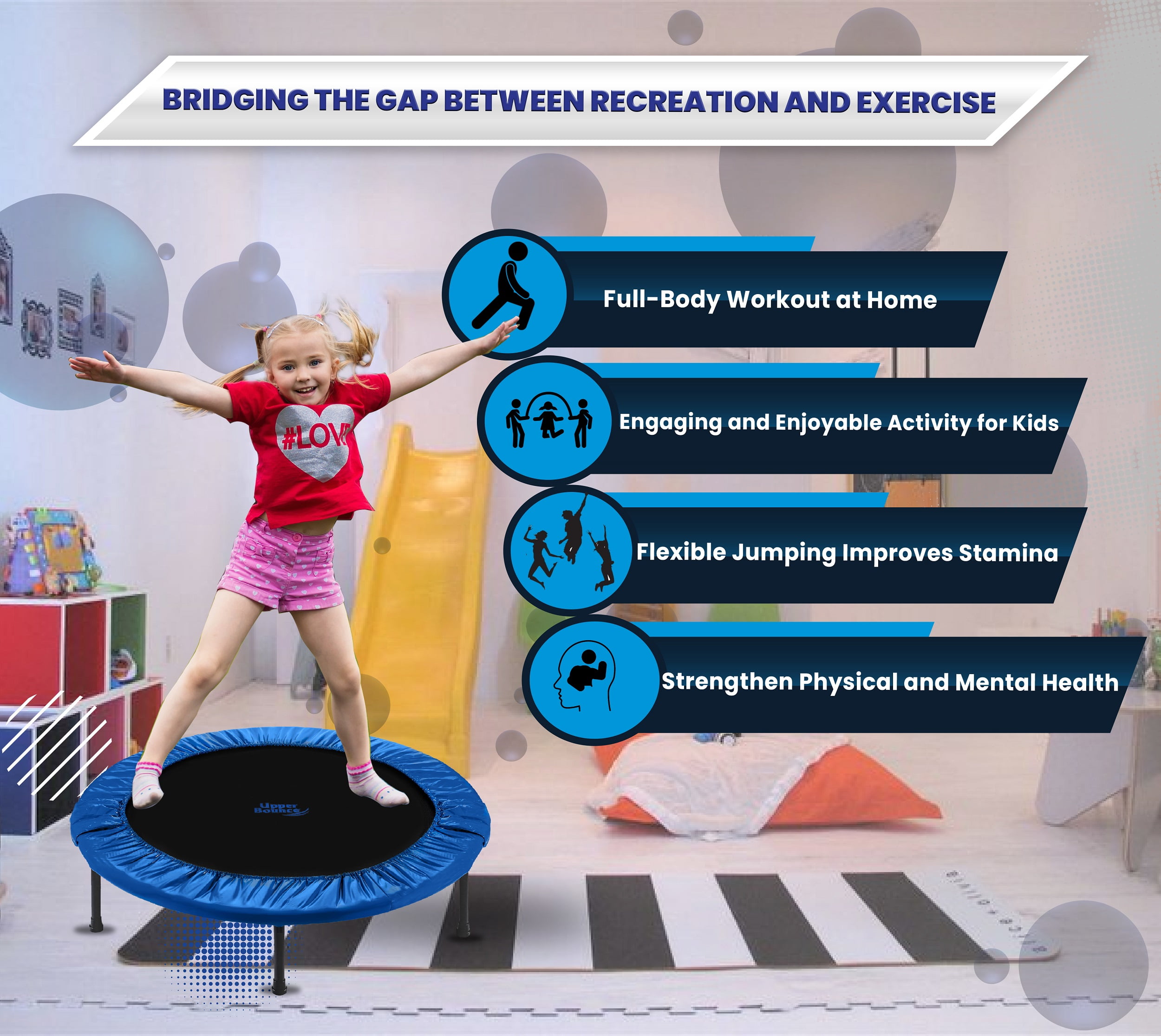 Safe to Use – This trampoline’s frame is built with ASTM Standardized solid steel along with gauge steel springs. Its thick spring safety pad makes it entirely safe for all ages to have indoor, & outdoor fun. Durability and Longevity – Built with rust and corrosion-resistant materials, this product is capable of enduring outdoor weather conditions. Its heavy gouged steel structure prevents it from breaking or bending easily. Easy to Assemble/Disassemble – It only takes minutes and a couple of hands to assemble this trampoline. It comes with the gauge steel springs already attached. One simply has to unfold the frame, put on the safety pad and legs, and the fitness trampoline is ready to be used. Simply Fold the Trampoline up when not used for easy storage! Bouncing Fun – This trampoline is suitable for both indoor and outdoor settings. Its state-of-the-art 8-row stitched high-quality premium PP mesh jumping mat and its strong and stable structure can accommodate up to 220 lbs. of weight at a single time. Accessories Included – Comes with steel frame and trampoline springs, high-density foam spring cover safety pad, premium foldable polypropylene extra-durable jumping mat, Anti-skid rubber-tipped legs, and warranty card.