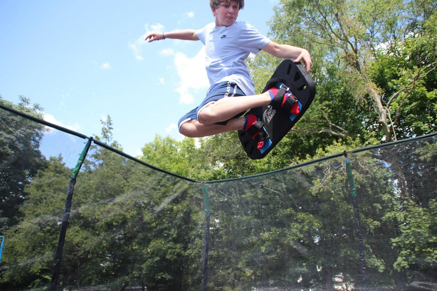 The Machrus Upper Bounce rebound board is an innovative, unique, flexible, inexpensive and easy to use addition to any trampoline. Just strap this board to your feet and start jumping! Practice different sports tricks or even invent new ones! Super lightweight with rounded edges protects your trampoline mat from damage. Slip Resistant fabric on the bottom and adjustable foot straps with heavy duty hook & loop closure keep you well secured while you bounce. The foam is flexible, strong, and has great shock absorption and is great for snowboard and wakeboard practice. Get this Machrus Upper Bounce Trampoline Rebound Board and you’re in for the best bouncing experience of your life!