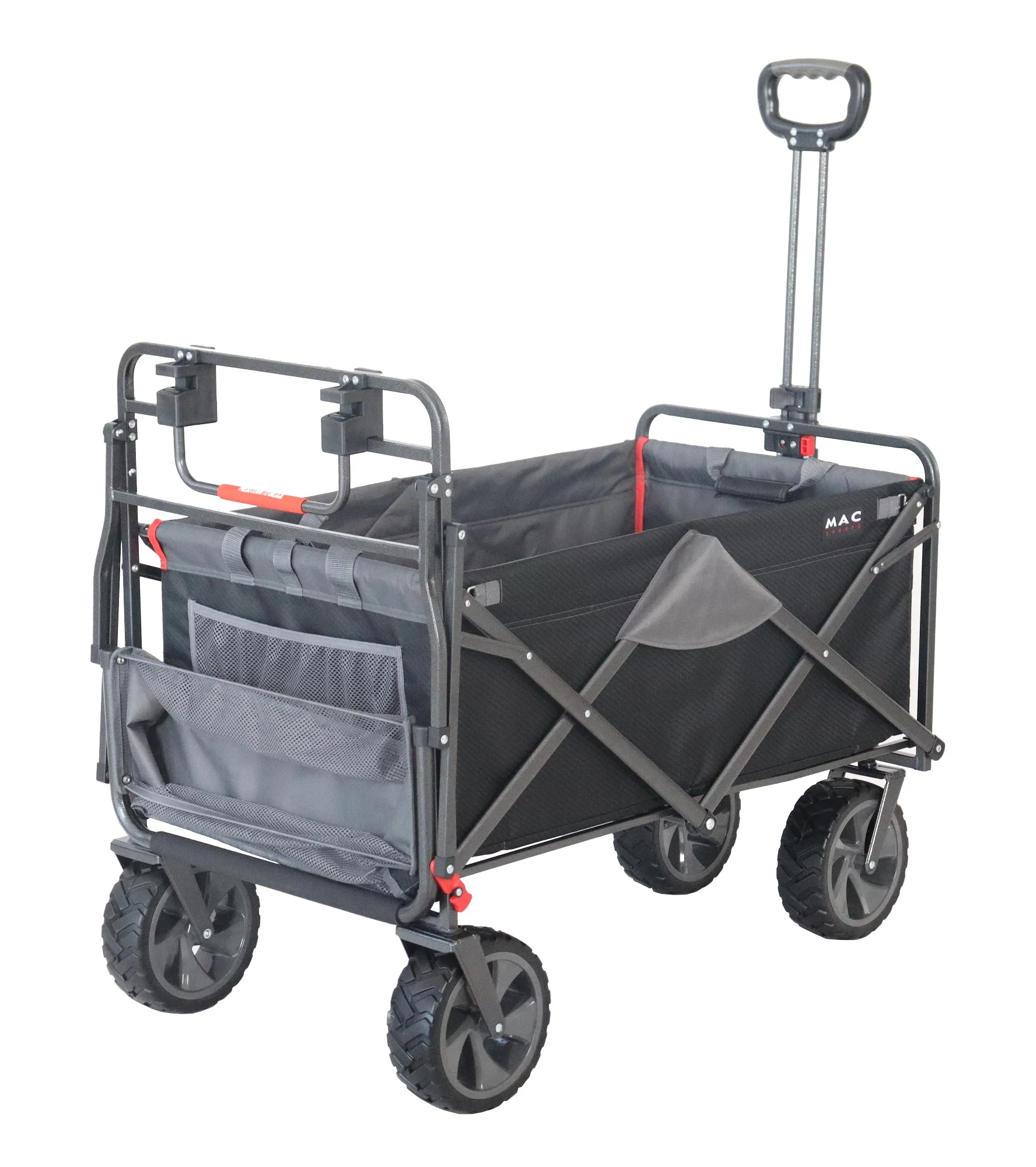Macsports Heavy-duty utility cart is ideal for carrying supplies to the beach, your backyard garden, or other outdoor events Deep interior compartment can hold up to 300 pounds of equipment or luggage Wagon is easily collapsible and folds inward for compact and easy storage Weight Limit 300 lbs Sturdy Steel Frame Durable Polyester fabric