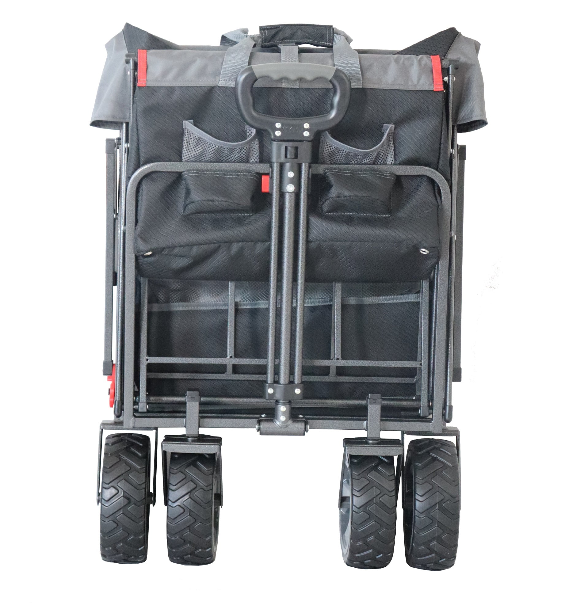 Introducing the Macsports Push-Pull Wagon – Whether you’re gardening, transporting sports equipment, camping, or shopping, this versatile utility wagon has you covered. Crafted with a heavy-duty steel frame and rugged polyester fabric, the Macsports Push-Pull Wagon is built to last. Its sleek black and gray design adds a touch of sophistication to its sturdy construction. Equipped with both a pull handle and an additional push-style handle, you have the flexibility to effortlessly switch between pulling or pushing, adapting to any situation with ease. No more struggling with heavy loads – the Macsports wagon offers ergonomic comfort and convenience for every task. With two attached cup holders and a fabric basket on the push-handle, you can keep your essentials close at hand while you’re on the move. Whether it’s a refreshing drink or small items you need quick access to, the Macsports wagon has thoughtful features to enhance your experience. When it’s time to pack up, the Macsports Push-Pull Wagon folds down effortlessly to a compact size, making storage a breeze in your car trunk or at home. Say goodbye to bulky carts that take up valuable space and wagons that require several steps of assembly in order to be on the move. The Macsports wagon is designed for maximum convenience. No assembly required and no separate/loose pieces to attach before and after use. From gardening to grocery shopping, camping trips to sporting events, the Macsports Push-Pull Wagon is your trusted companion for every adventure. Experience the perfect blend of durability, versatility, and convenience with Macsports – because life’s journeys are meant to be enjoyed, not endured.