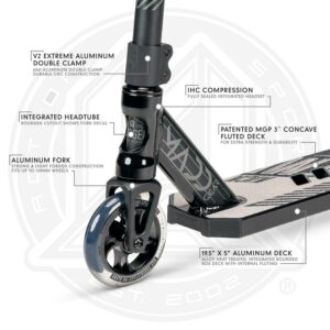 – KICK EXTREME – The Madd Gear Kick Extreme stunt scooter comes dialed straight out of the box and ready to shred your local skatepark! This full-size scooter is backed by Madd Gear s reputation for quality and durability