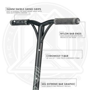 – QUALITY BUILD- Our Pro-scooter built with the MGP Y-bar 22 wide and 24 4031 Japanese Chromoly Standard Diameter with Internal Fluting and the MG sealed Bearing Threadless give the scooter the the qualities of a scooter only the pros would ride.