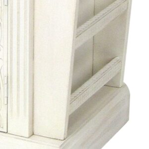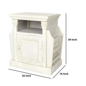 Magazine Cabinet with 1 Door Cabinet and Rods, White- Saltoro Sherpi Keep your daily magazines, books and newspapers organized with the inclusion of this magazine cabinet. It is equipped with 1 open bottom shelf and 1 door storage with round knob to provide easy access. The hanging rods on each side allows to hang magazines, newspapers and other reading materials.