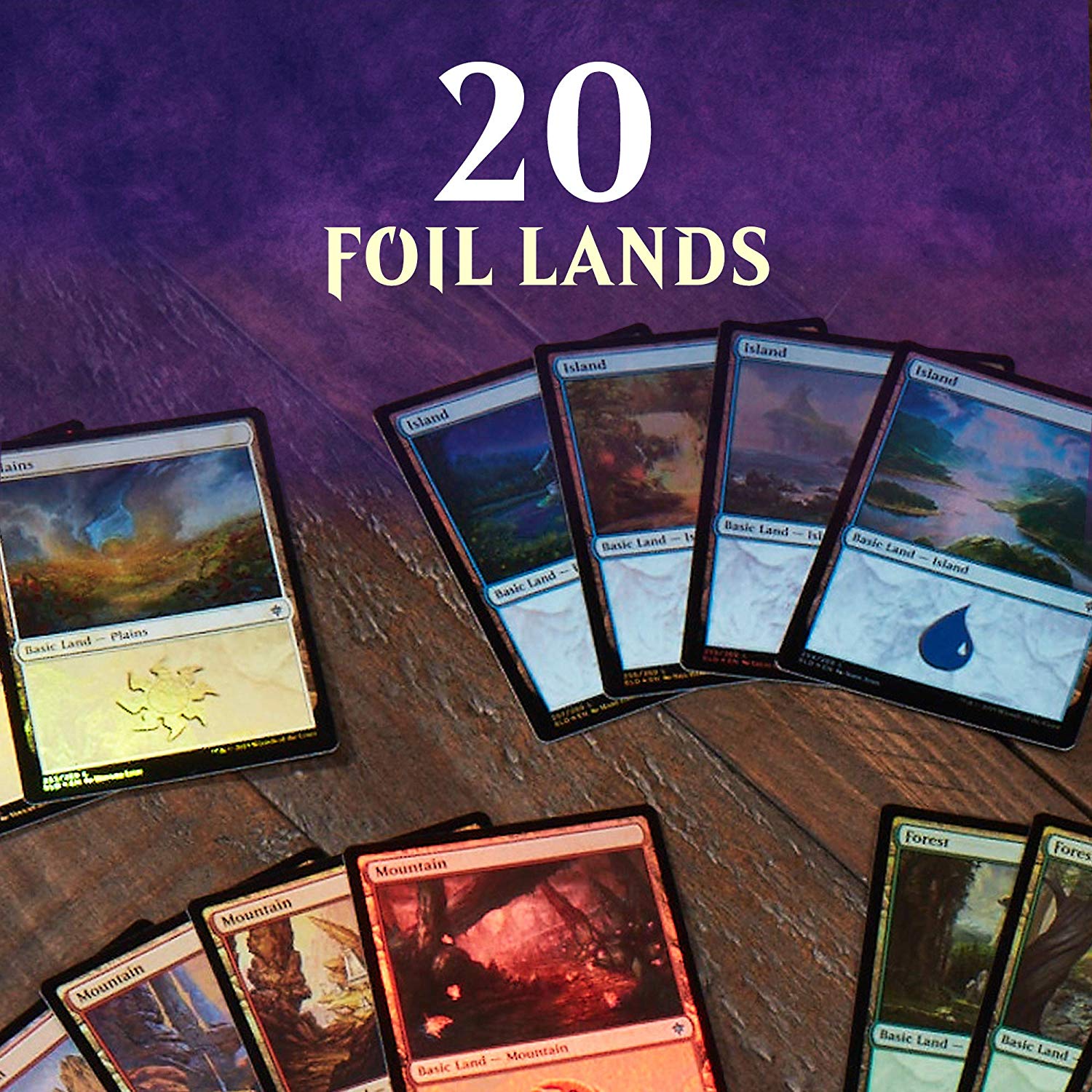 10 Booster Packs give you the variety you need to create the perfect deck. Choose your favorites, build your deck, and battle! You?ll be ready to play with 20 basic lands, 20 foil basic lands, 1 alternate-art foil rare card, a reusable storage box ,and one oversized life counter on top of your booster packs. Throne of Eldraine spins Grimm?s fairy tales and Arthurian legend as only Magic: The Gathering (MTG) can. Create your own story as you battle with your favorite fabled creatures! These fairy fales fight back. Plan your attack, develop new tactics, and adapt your plans on the fly as you battle your way to victory. Magic: The Gathering (MTG) players around the world have gathered together to play for years. Become a part of one of the largest card game communities in the world. The original strategy card game, Magic: The Gathering (MTG) has inspired more than 38 million fans over 25 years.
