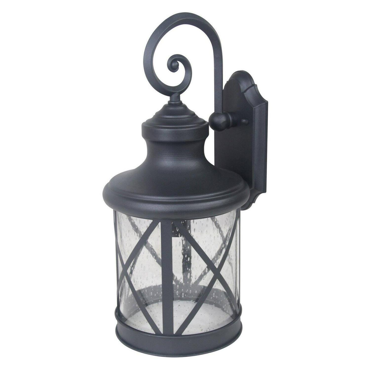Yosemite Home decor presents the Mahoney Collection 1-light wall-mount exterior lantern in a Black finish. This exterior exudes a crisp warm illumination and its Black finish complements a variety of outdoor decors. It features an attractive clear seeded-glass shade and this fixture is constructed of steel for durability. The lantern provides illumination to your patio deck or front entrance with style. A limited 1-year warranty is included on all parts. It requires (1) incandescent medium (E26) base bulbs at a maximum of 100-watts. Item Code #5041BL-M.