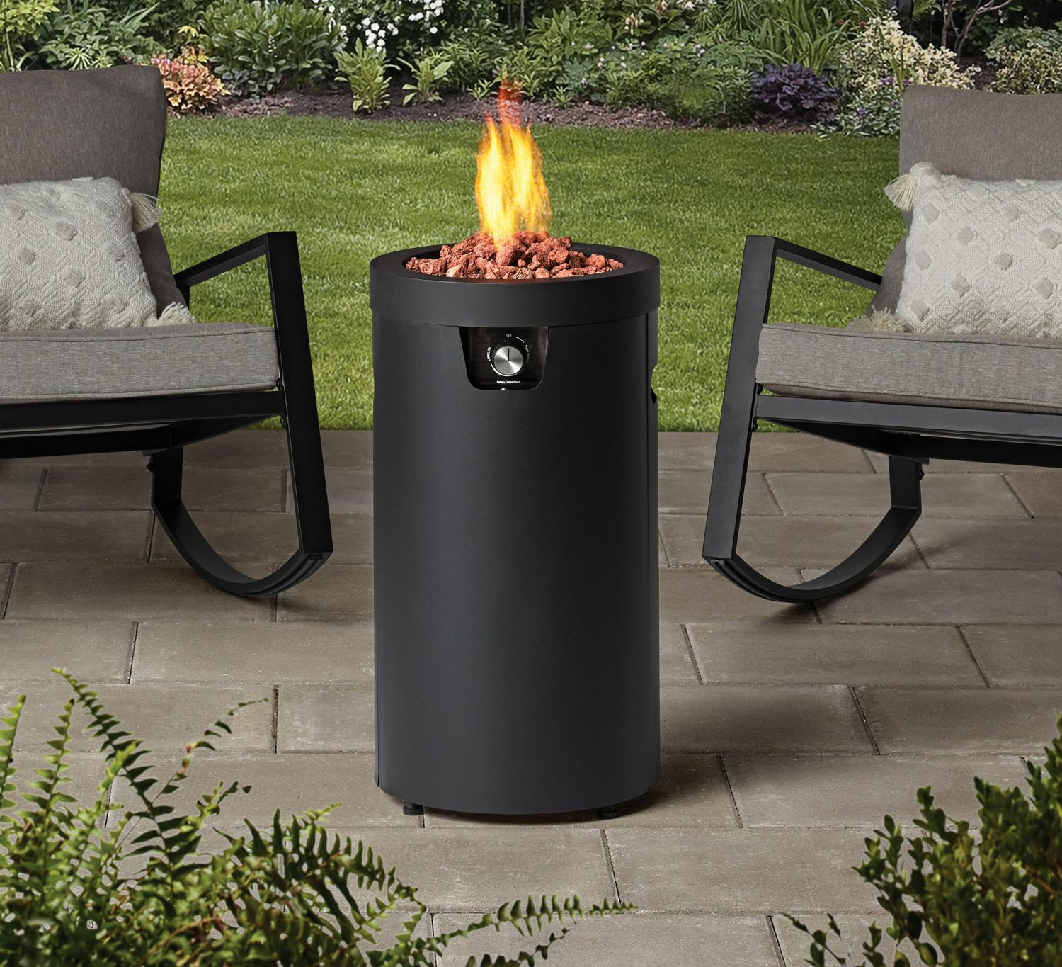 Mainstays 28-inch Tall Column Propane Gas Outdoor Fire Pit, Matte Black Finish