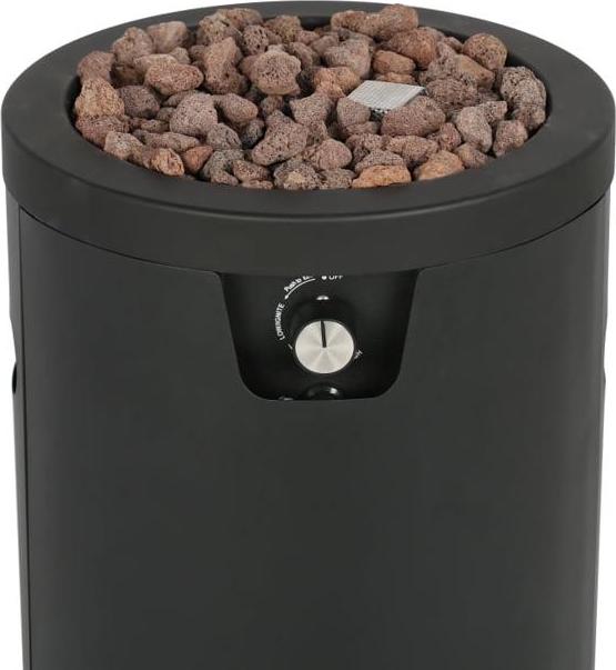 - Round column-style fire pit is an attractive centerpiece for your outdoor living space