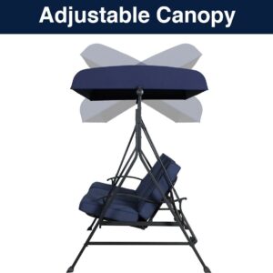 Mainstays Belden Park 3 Person Seated Daybed Outdoor Porch Swing with Canopy- Blue