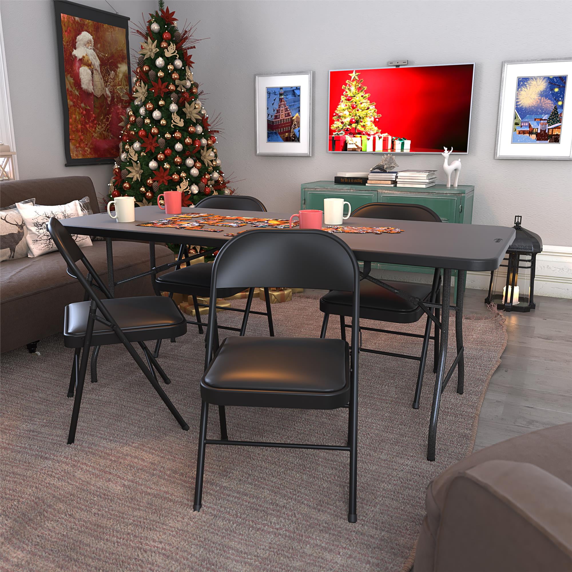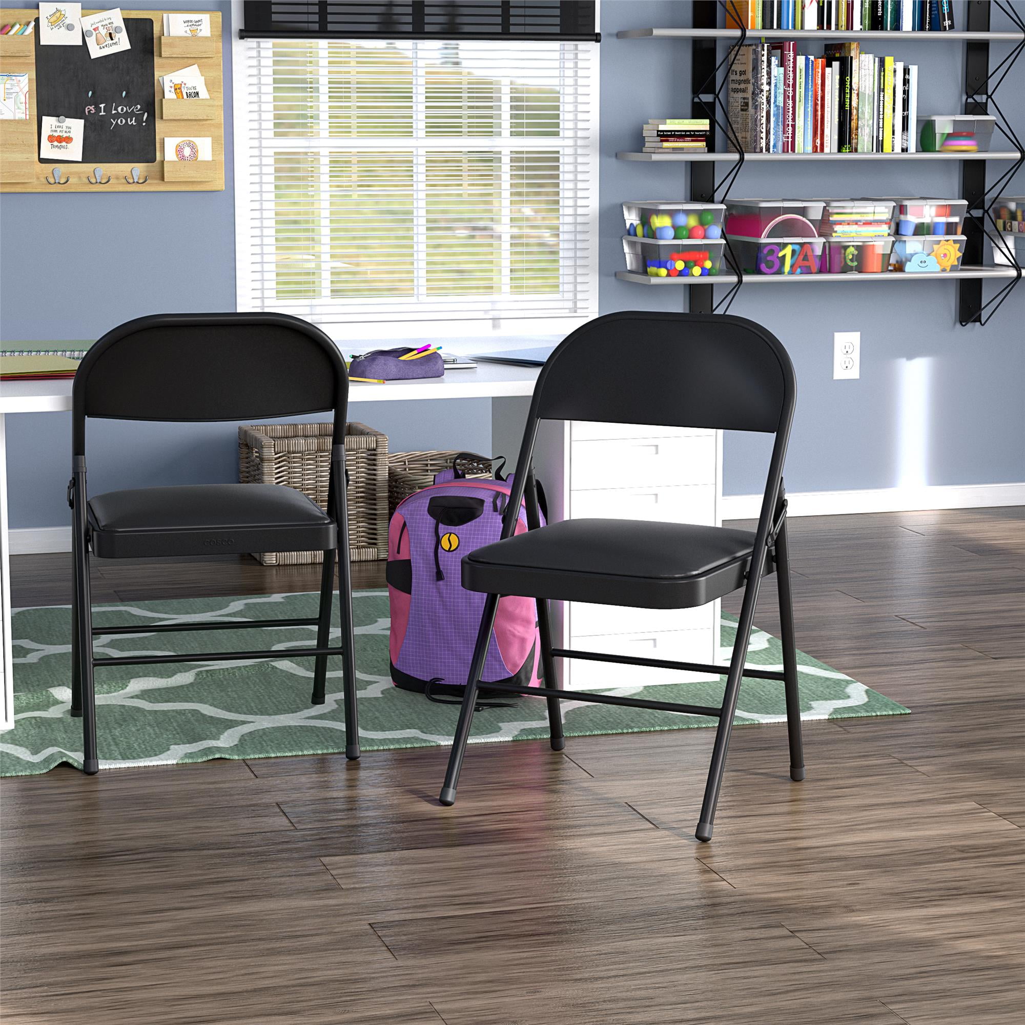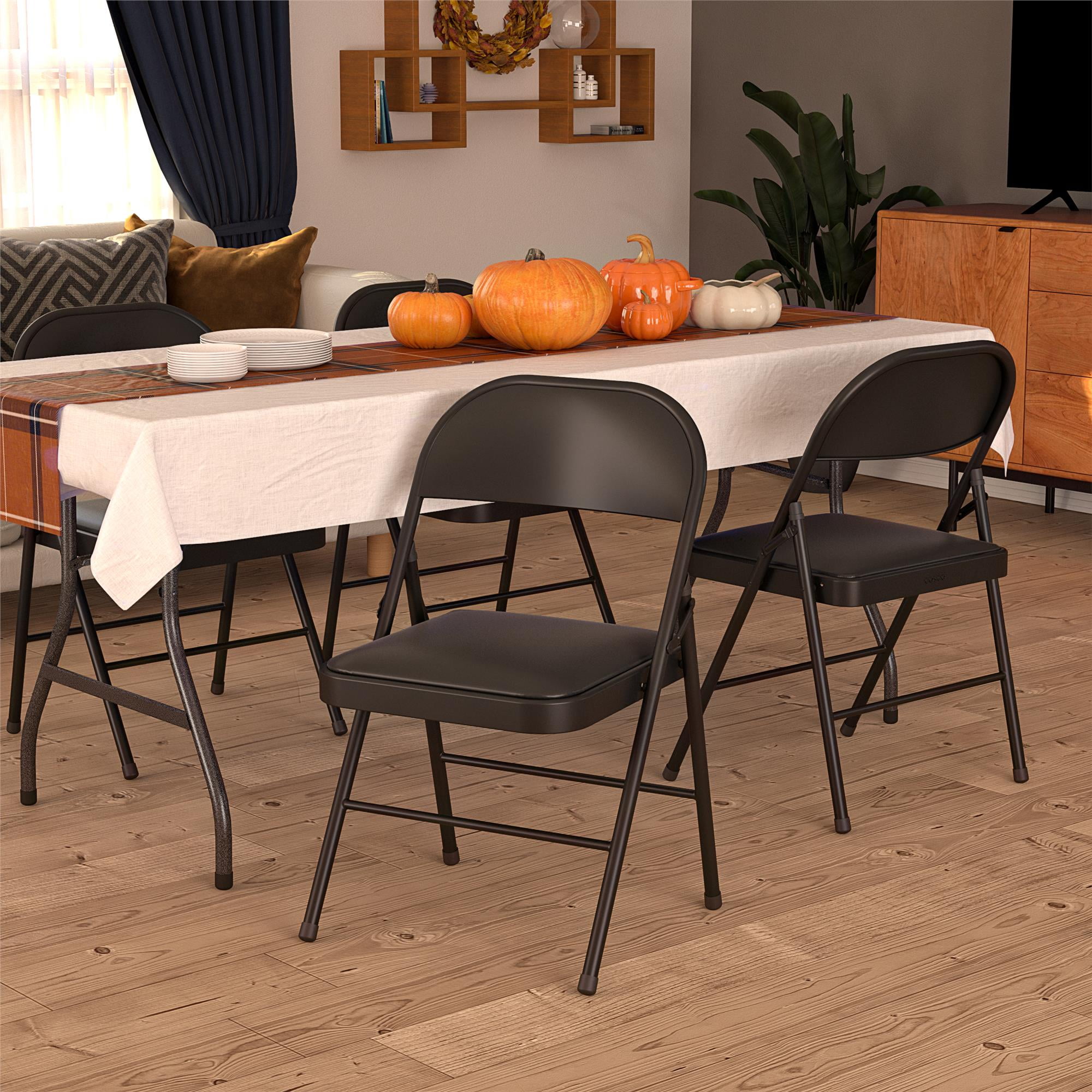 Mainstays Deluxe Vinyl Padded Seat and Metal Back Folding Chair, Black