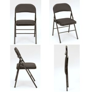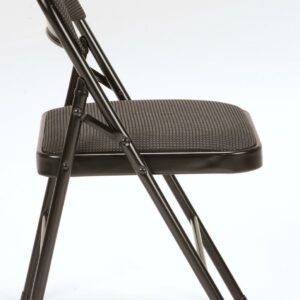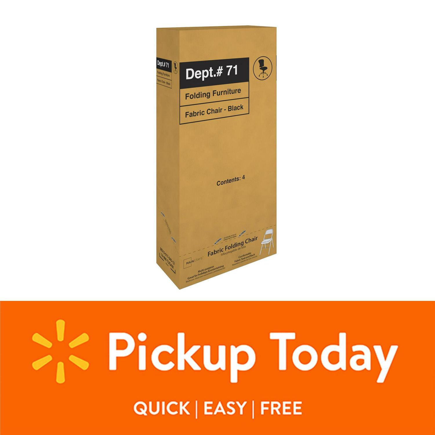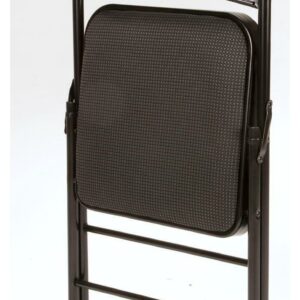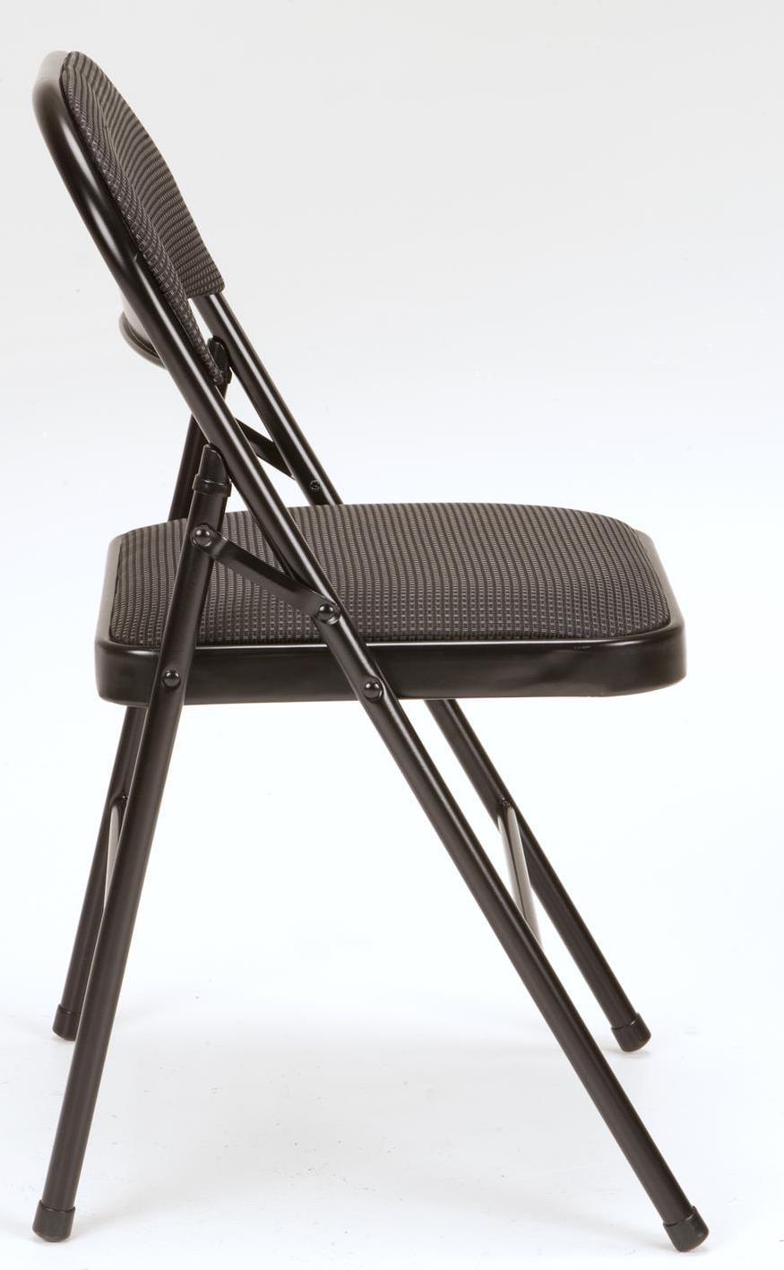 Enhance your next birthday party, holiday gathering, or daily routine with the Mainstays Fabric padded seat and back folding chair! The black color of this product allows you to have a simple, elegant addition to your living space without clashing with your existing color palette or furniture layout while providing extra seating for special occasions or daily use. Constructed out of a fabric seat and steel frame combination, this chair to be a long-term purchase you can use with peace of mind and no regrets! The fabric material provides you with a multipurpose option of comfort for your guests under all circumstances. The powder-coated finish makes our chair heavy-duty while retaining its stylish simplicity. Featured with this are non-marring leg tips intended to prevent slipping when in use and protect your floor’s surface from any possible damage. When not in use, the fold hinges built into the chair allow this product to fold flat for easy, non-invasive storage so it s out of sight, out of mind. Pair the Mainstays Fabric Folding Chair with our folding tables and make your next gathering an entertainer’s dream.